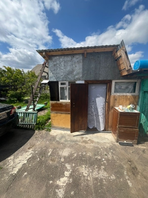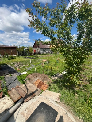 На участке : сарай, гараж небольшой,огород с саженцами.