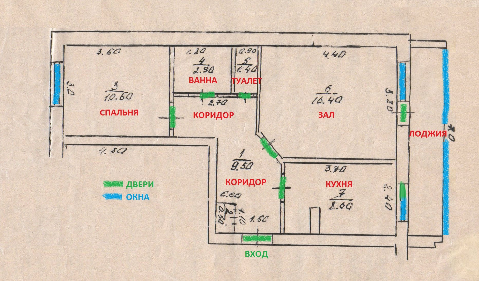Лоджия большая застеклённая — 8,40 кв.м.