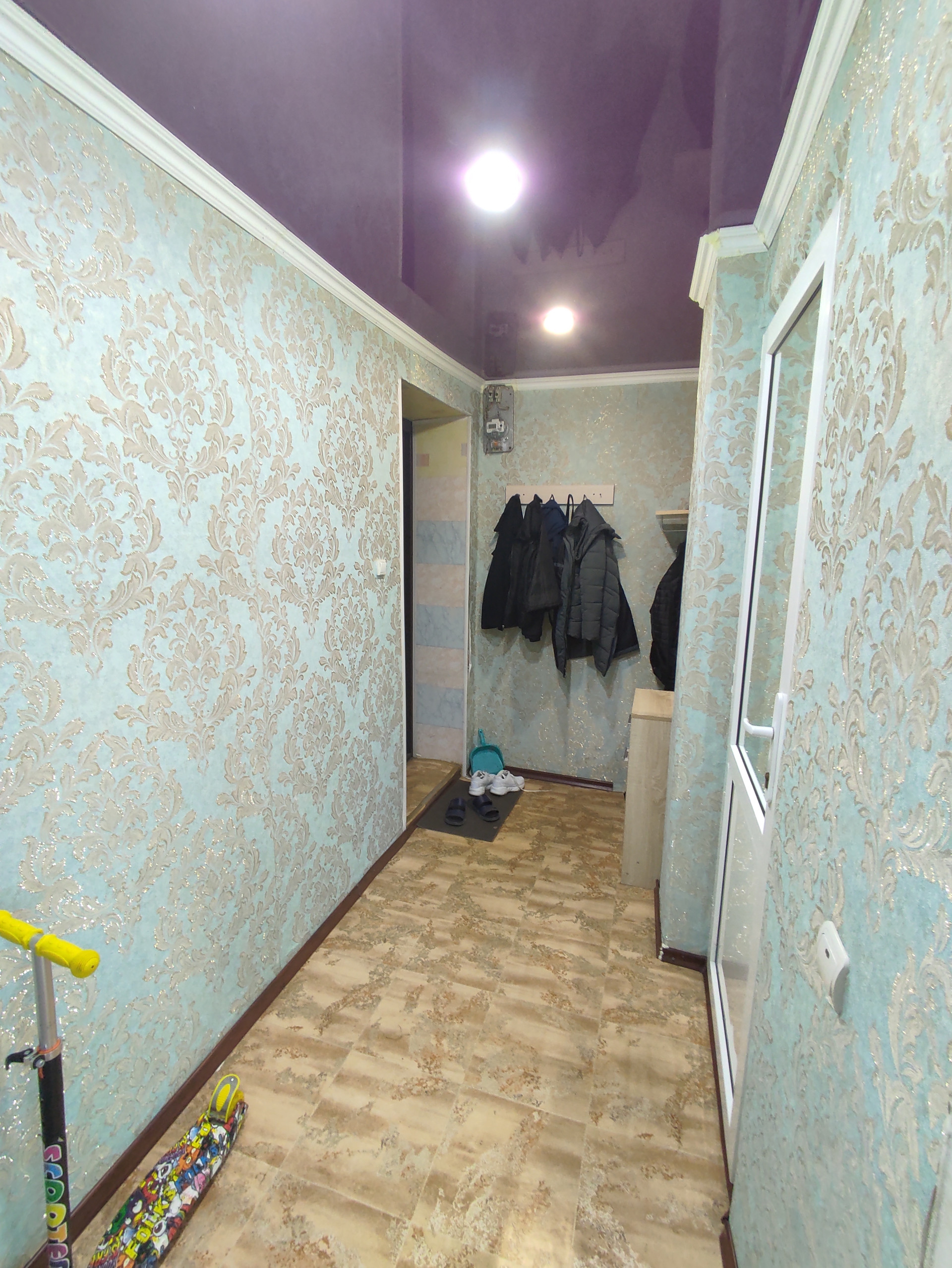 Квартира с оптимально удобной планировкой, где две комнаты изолированы. В квартире был выполнен ремонт. Потолок по всей площади квартиры натяжной, стены оклеены обоями. В коридоре, кухне и жилой комнате на пол настелен линолеум. Ванная комната и туалет совмещены, отделаны кафелем. Пластиковые окна. Качественная входная дверь Горячая вода от газового котла. Соседи положительные.