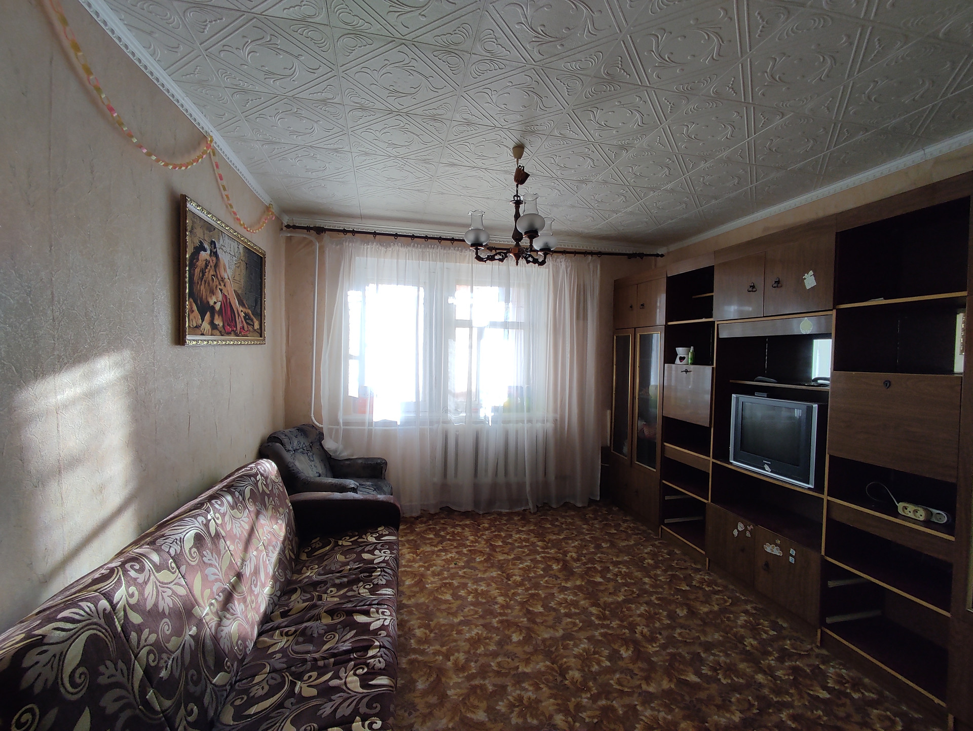 - одно окно пластиковое (спальня), (зал, кухня, балкон) окна деревянные
