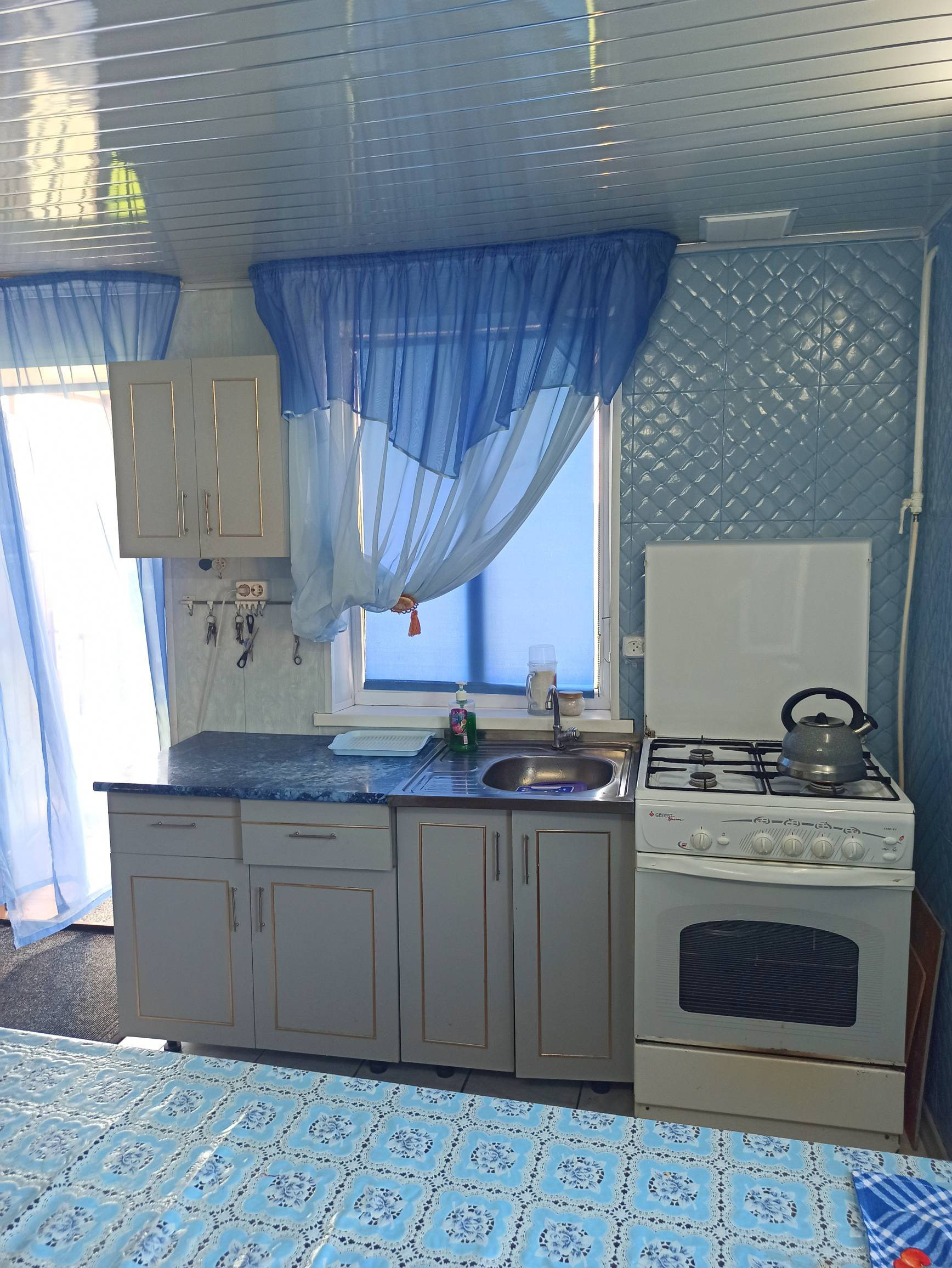 В продаже кирпичный дом 95 кв.м с земельным участком 12 соток. В доме две кухни, две спальни, зал, санузел совмещённый, отдельная комната под котельную. Вода центральная, также имеется своя скважина. Имеются надворные постройки, баня на дровах, летний душ, летний туалет, гараж, сарай, летняя кухня размером 40 кв.м, оборудована водопроводом, сливом,  можно использовать как отдельную жилплощадь. Имеются насаждения ( виноград, яблоня, слива, вишня). Район тихий, спокойный.