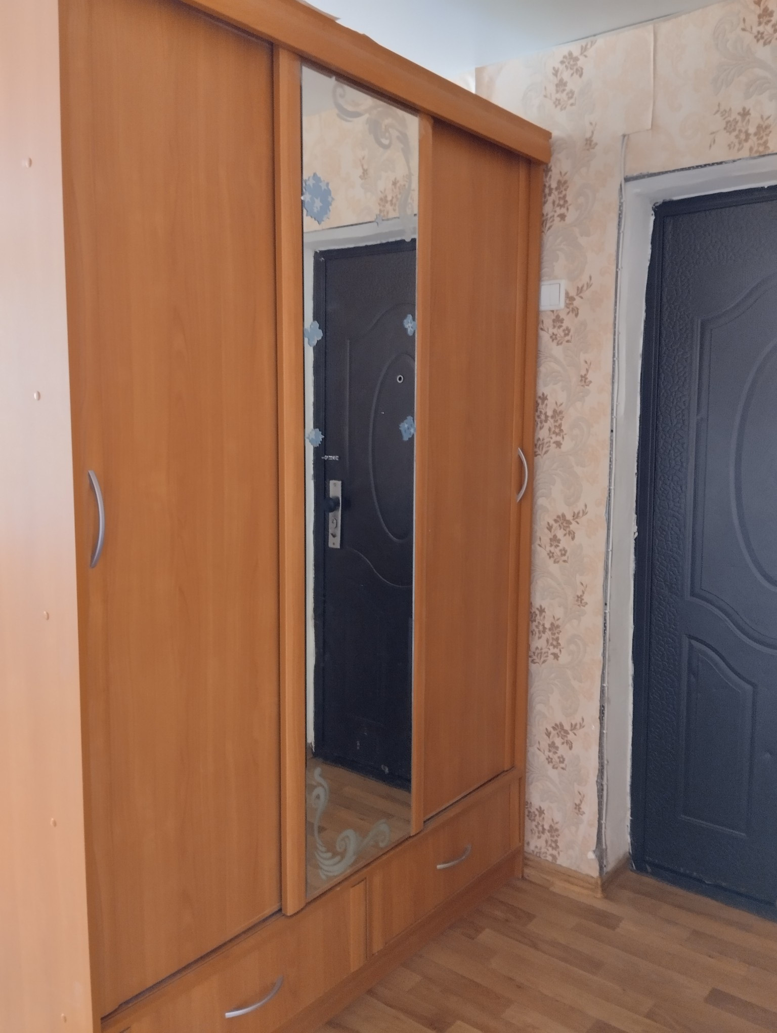 В комнате из мебели остаётся только шкаф (без зеркала).
