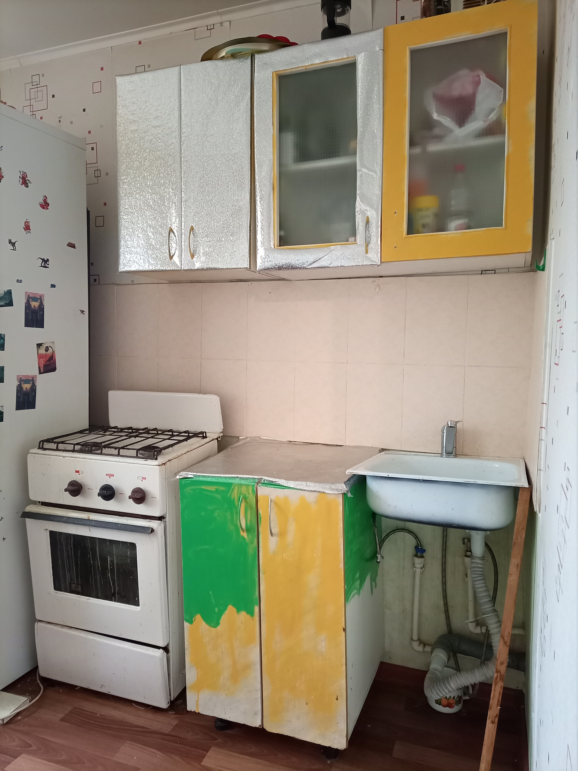Квартира в среднем состоянии, на кухне фартук плитка, сан узел совмещен с ванной комнатой стены панели, трубы поменяны.