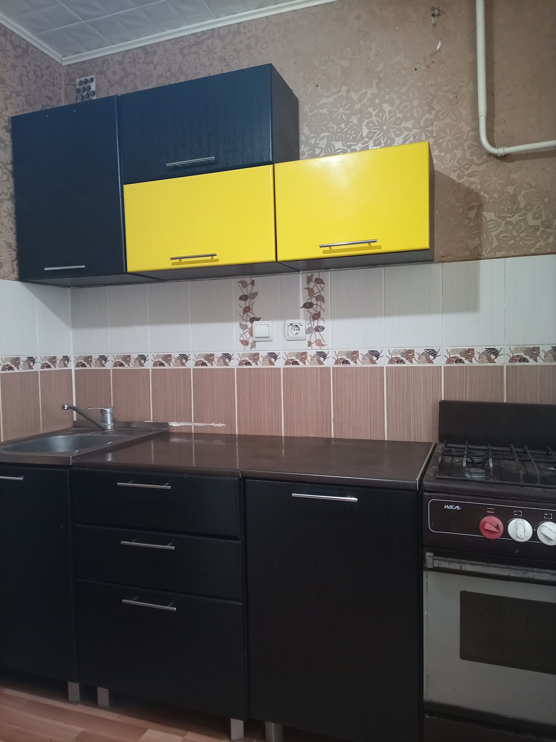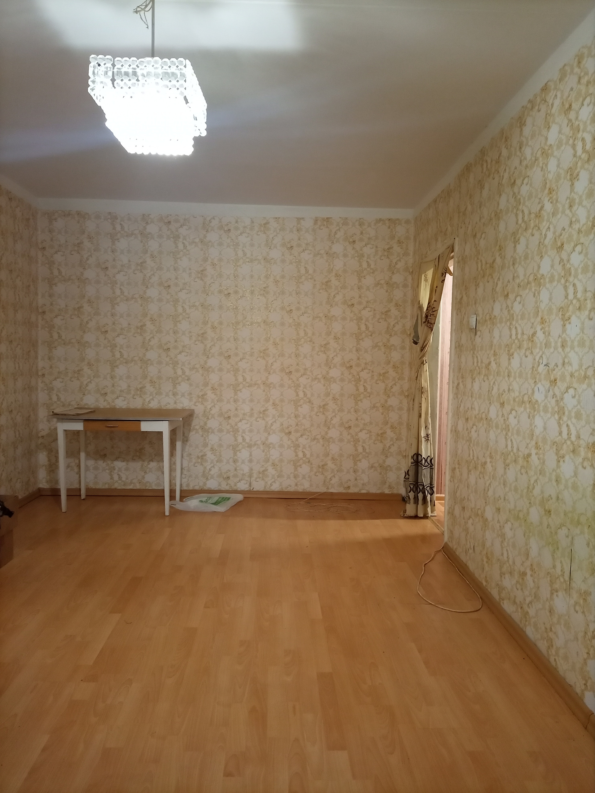 Квартира в среднем состоянии, сан узел совмещен с ванной комнатой, на кухне фартук плитка.
