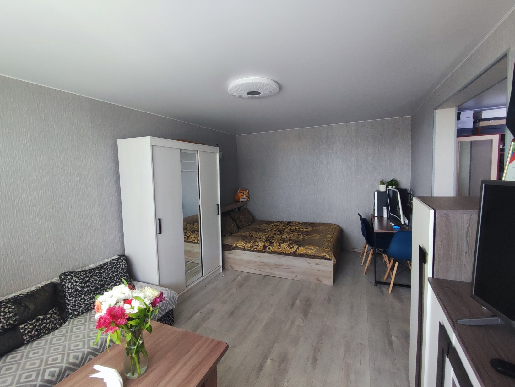 Квартира с капитальным ремонтом! Новая проводка, заменены все трубы, краны. Стены выровнены гипсокартоном. В квартире есть горячая вода. Стоят стеклопакеты. Квартира очень теплая. Кухонный гарнитур в подарок! Один взрослый собственник