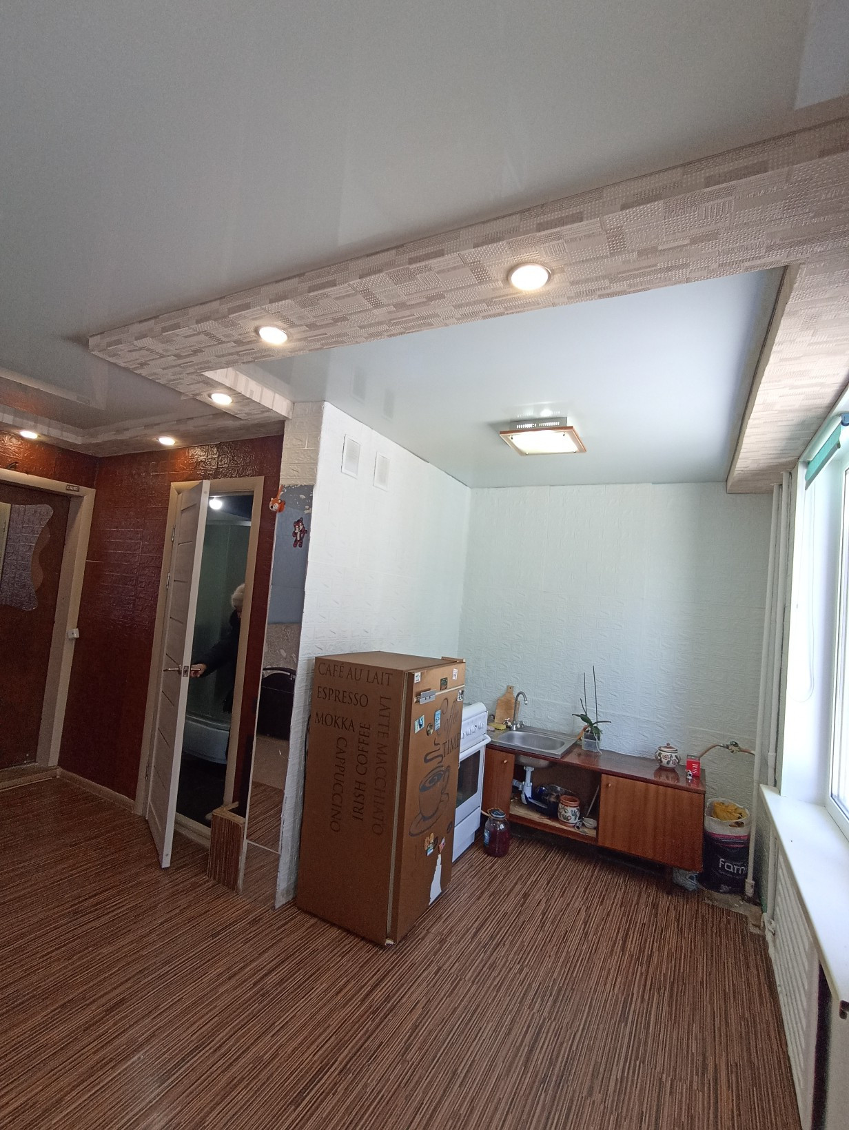 квартира-студия с балконом, отличное расположение дома, выполнен косметический ремонт, стеклопакеты, натяжные потолки, комбинированная отделка полов: ламинат, ковролин, очень тёплая, в санузле душевая кабинка, новая сантехника, в середине дома, есть в дворе парковочные места.