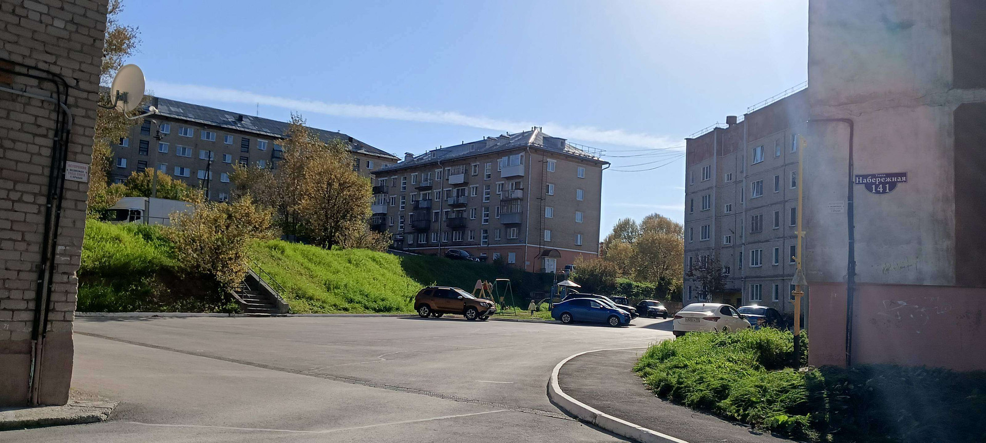 Придомовая территория оборудована парковкой, что особенно актуально для автовладельцев.