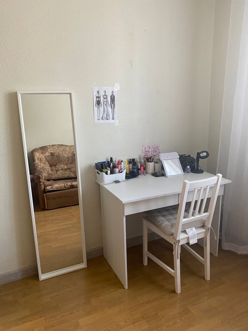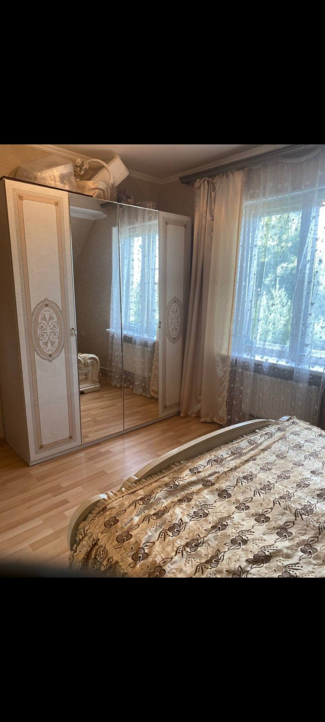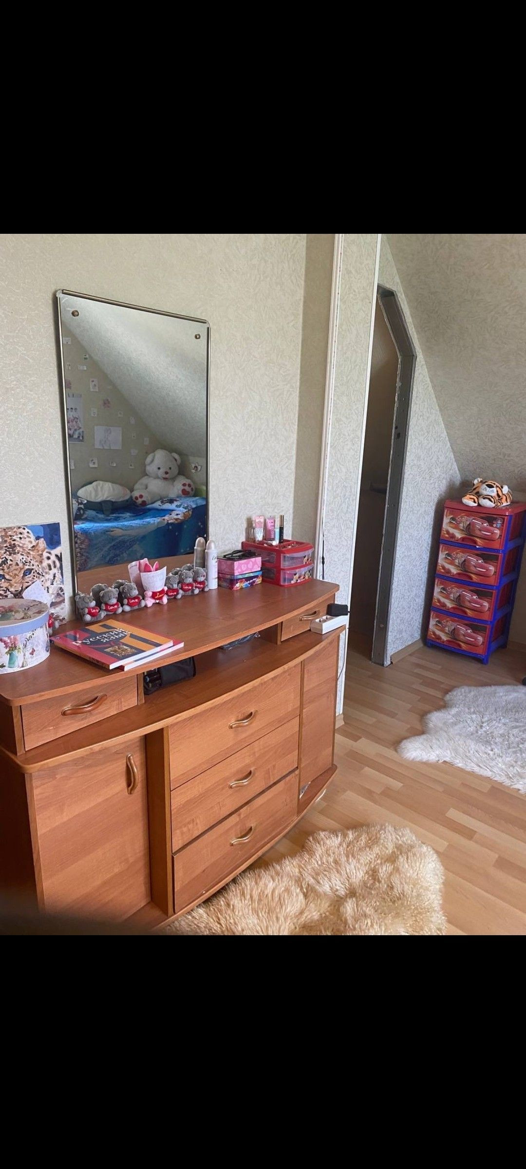 Мансарда- гостинная 33 кв м, 2 комнаты с гардеробными и сан узел.