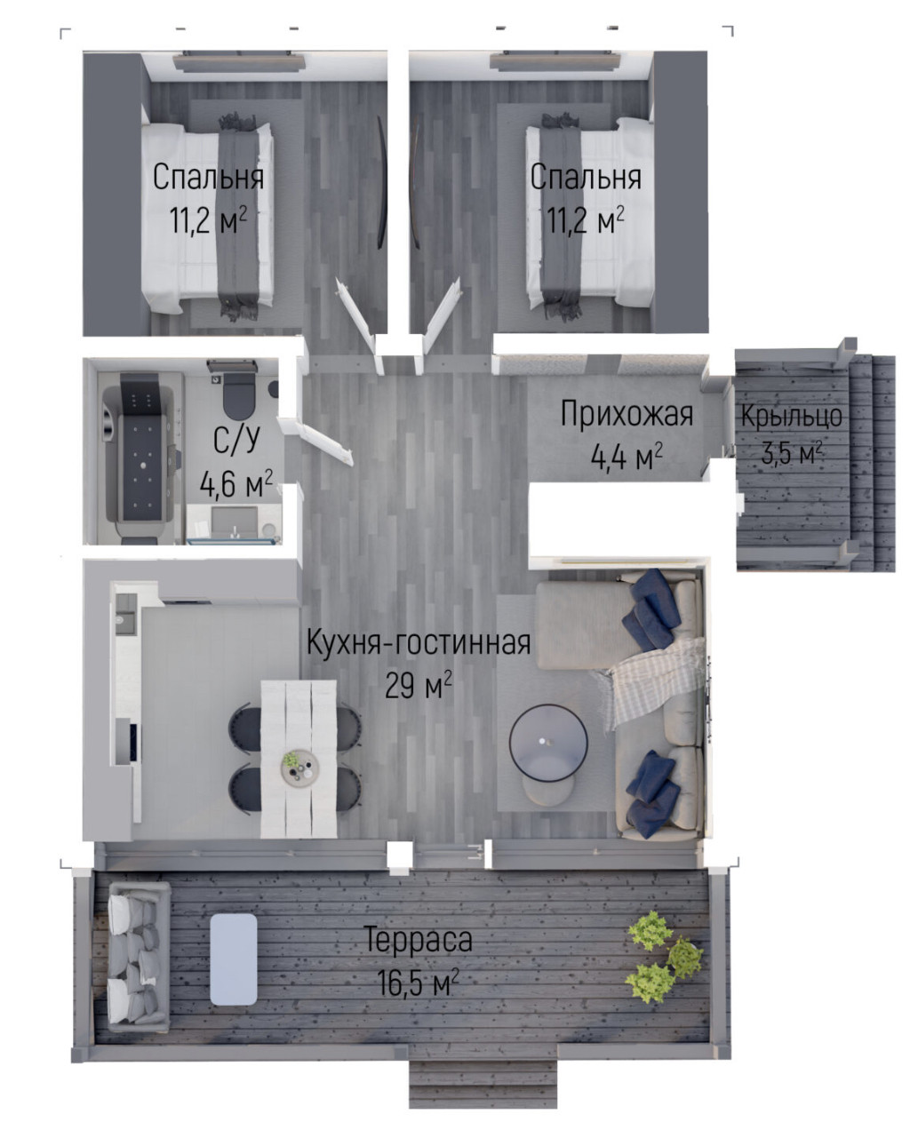 Дом имеет продуманную и эргономичную планировку, подходит для круглогодичного проживания.