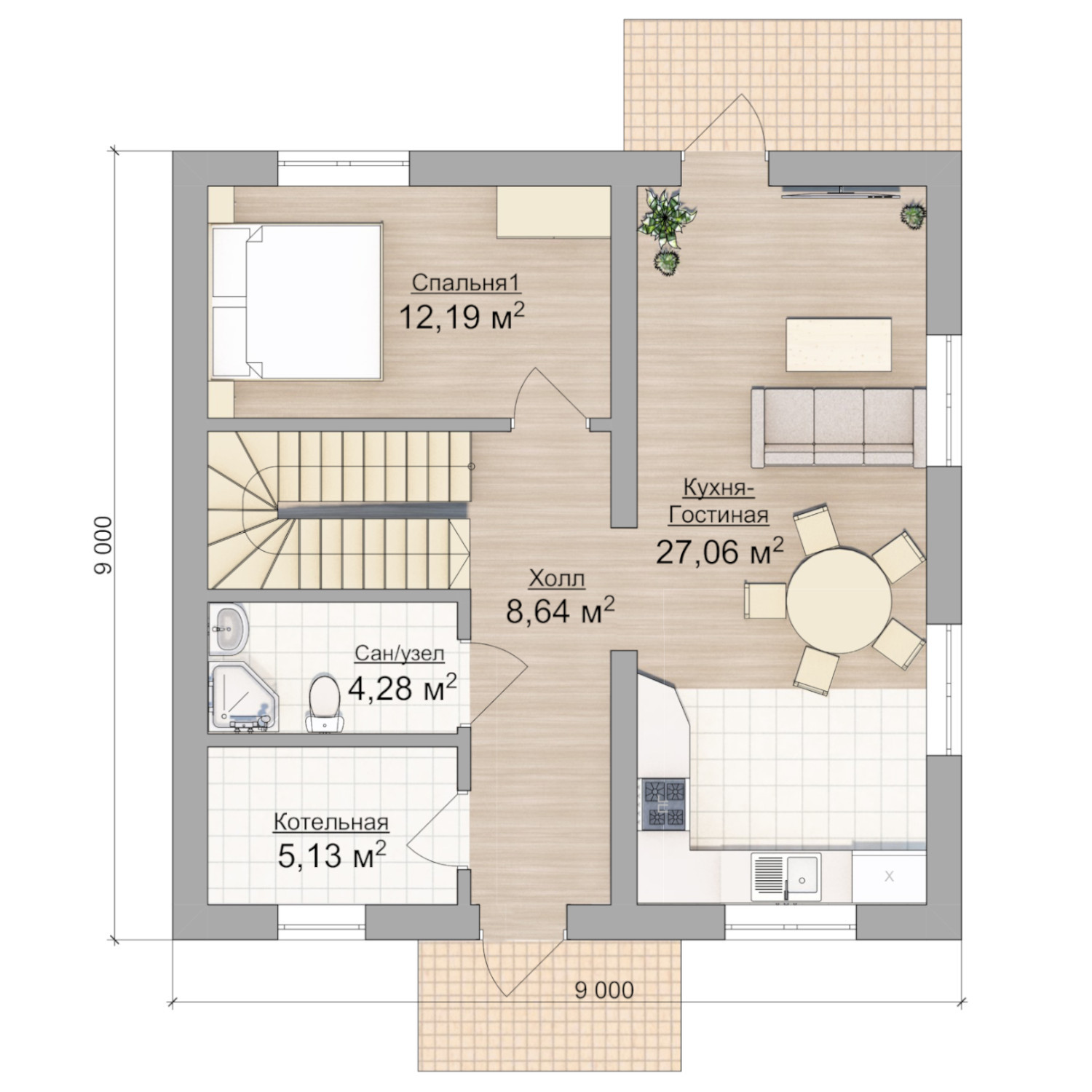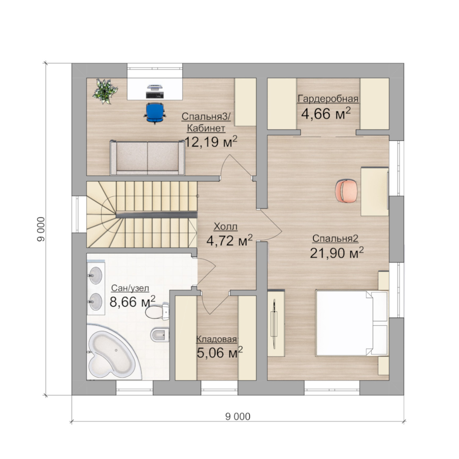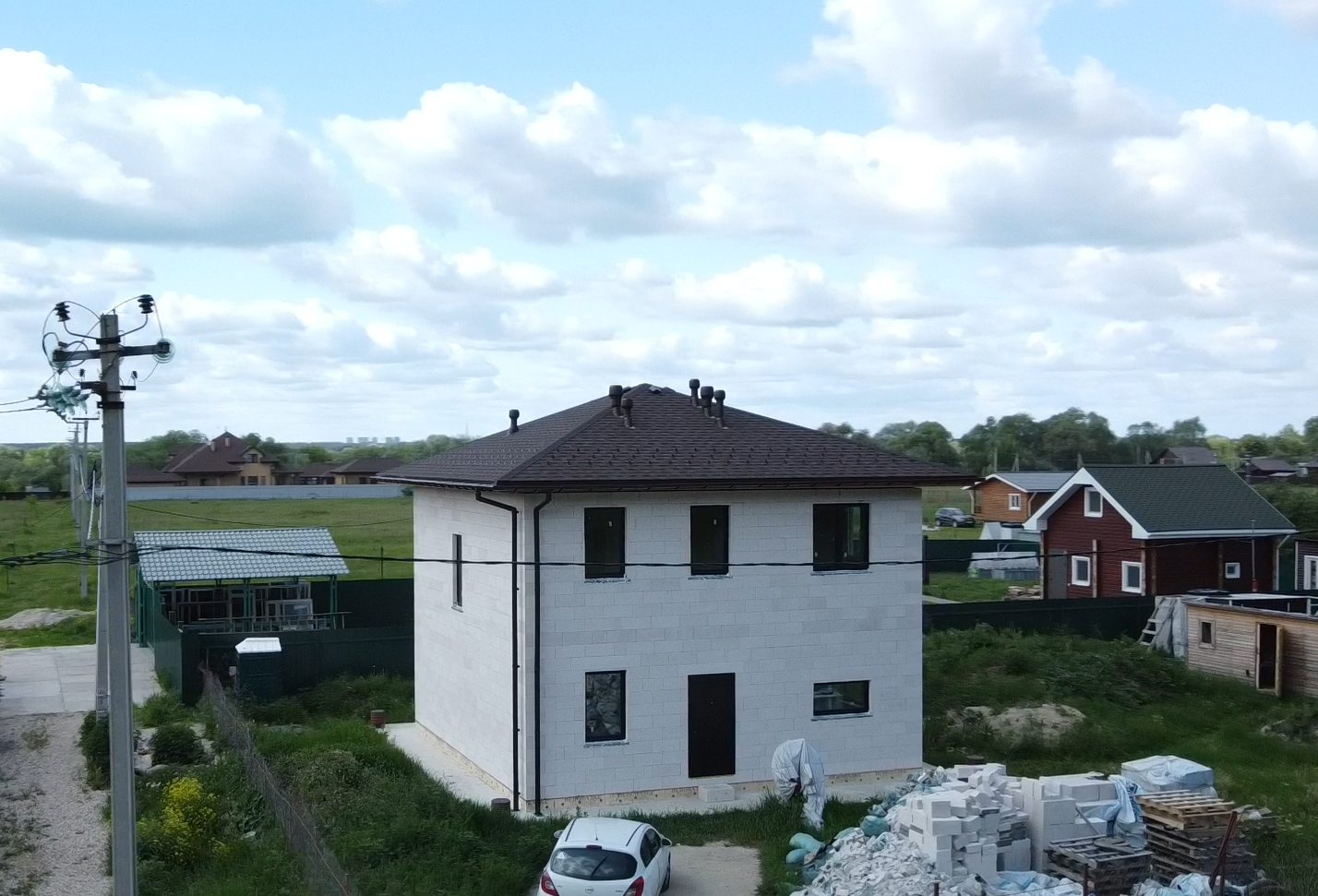 Двухэтажный дом 9Х9 по проекту Сумароково, общей площадью 162 кв м с живой, меняющейся панировкой. Это полностью отработанный проект, который постоянно совершенствуется и масштабируется. Дом построен из газобетонных блоков на монолитном плитном фундаменте. Он имеет внутреннюю площадь 120 кв м и  разместил в себе все необходимые для комфортной жизни помещения: кухня - гостиная, 3 жилых спальни, 2 санузла, кладовая, котельная и прихожая. Все продумано до мелочей.