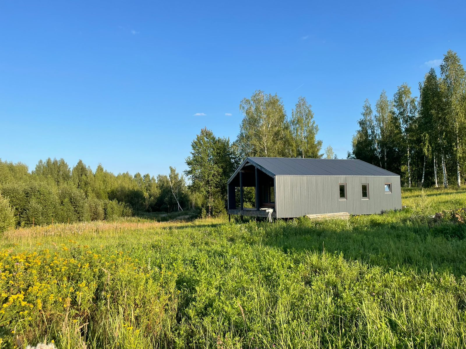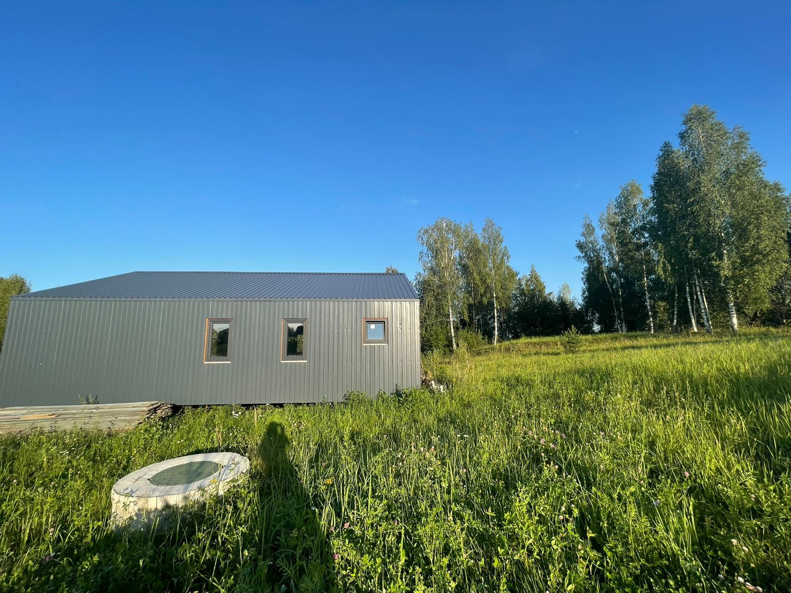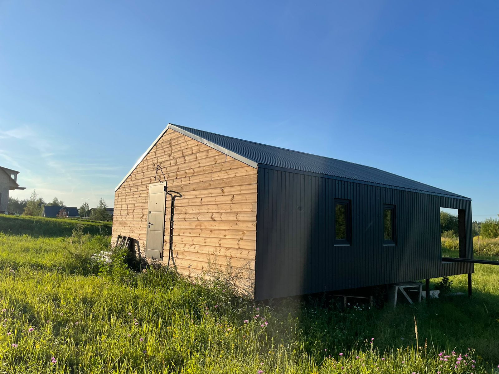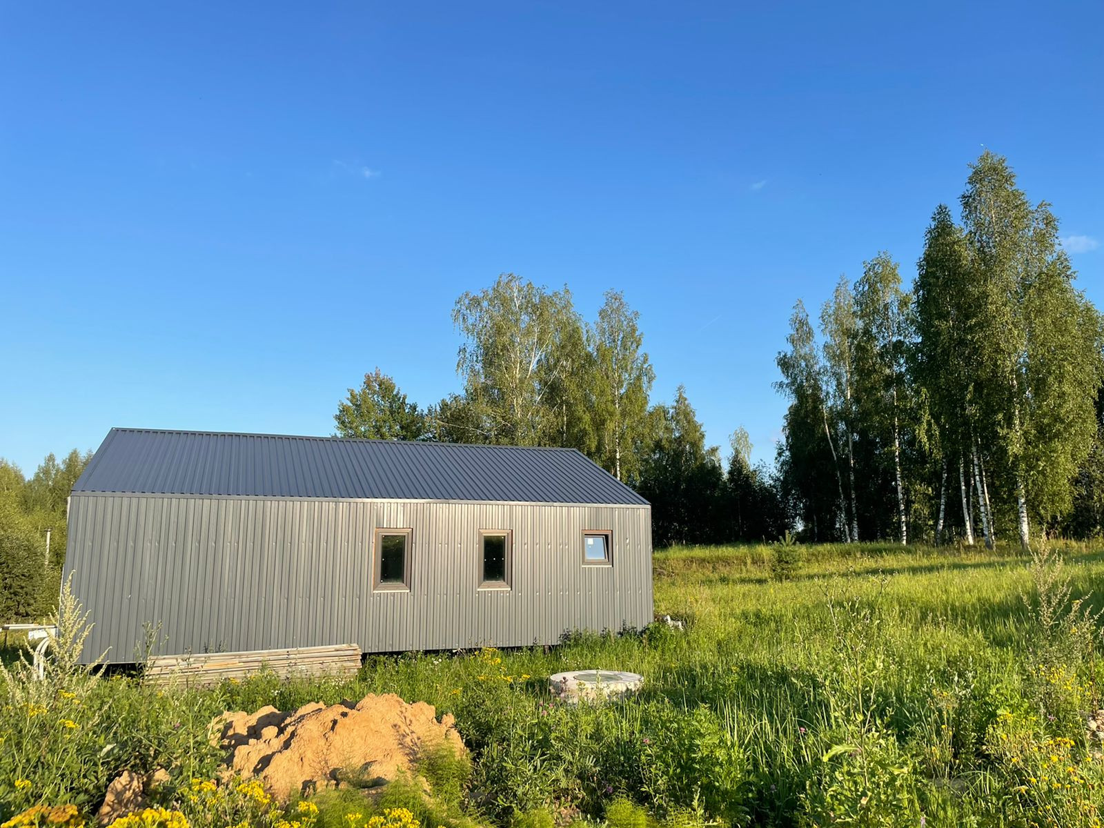 Дом 60 кв. м., каркасный (из строганной доски), обшитый железом. Под чистовую отделку. Установлены дорогие, двойные стеклопакеты. Сделано двойное утепление. Тёплые полы во всем доме. Установлен энергоэффективный котёл.  Дом строился для себя, поэтому на материалах не экономили. Подходит для круглогодичного проживания! Возможно переделать под баню, а рядом построить дом побольше, земли для этого более чем достаточно.