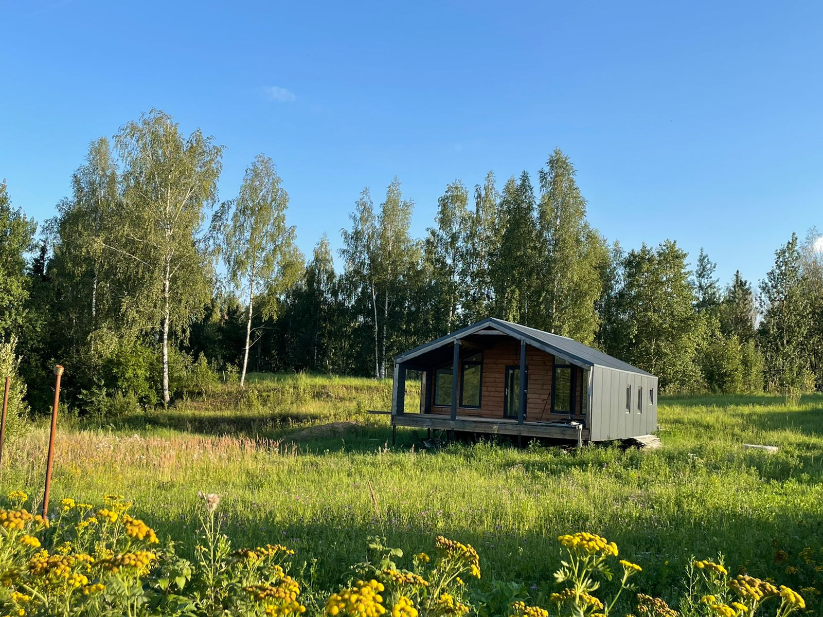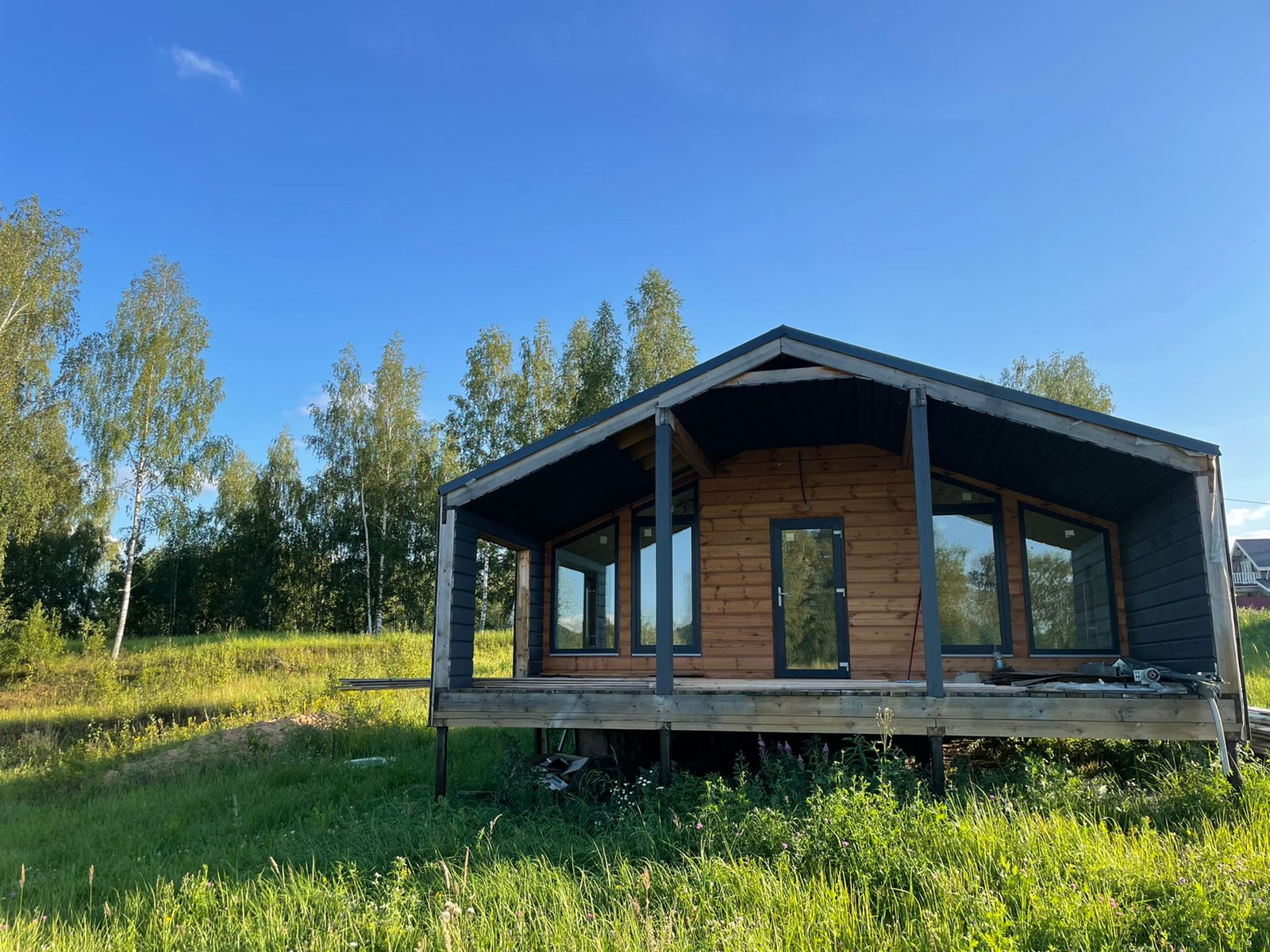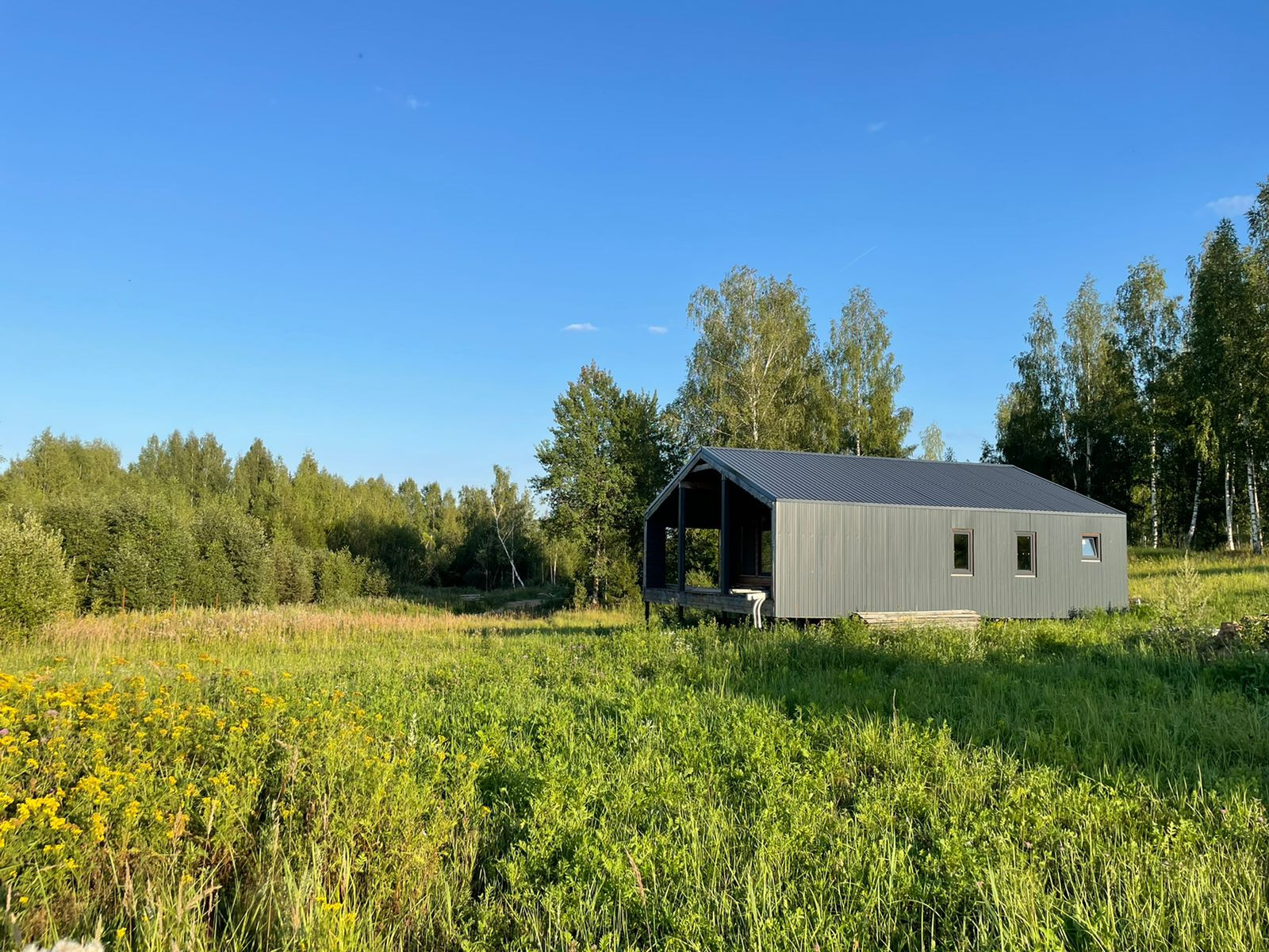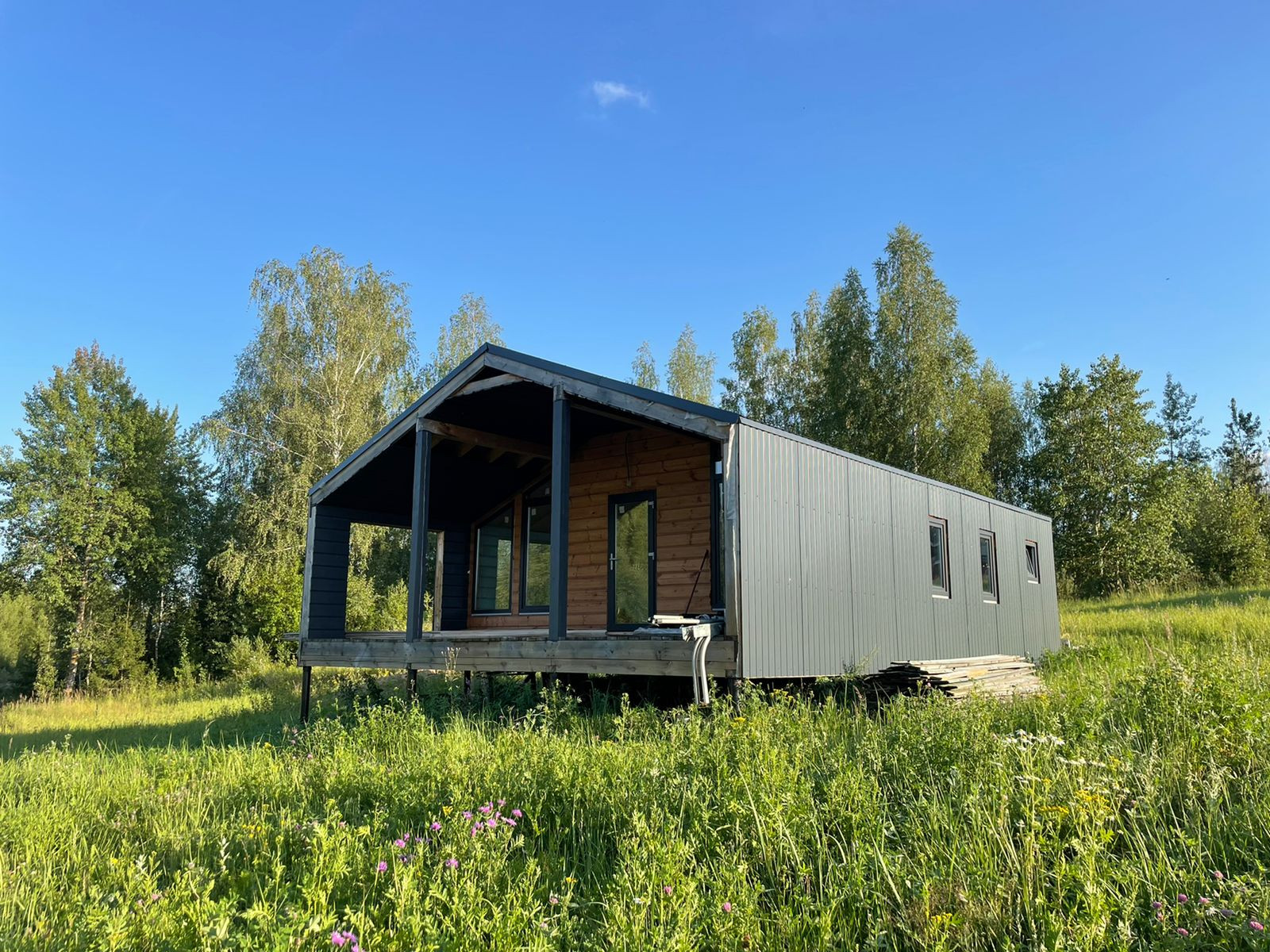 Дом 60 кв. м., каркасный (из строганной доски), обшитый железом. Под чистовую отделку. Установлены дорогие, двойные стеклопакеты. Сделано двойное утепление. Тёплые полы во всем доме. Установлен энергоэффективный котёл.  Дом строился для себя, поэтому на материалах не экономили. Подходит для круглогодичного проживания! Возможно переделать под баню, а рядом построить дом побольше, земли для этого более чем достаточно.