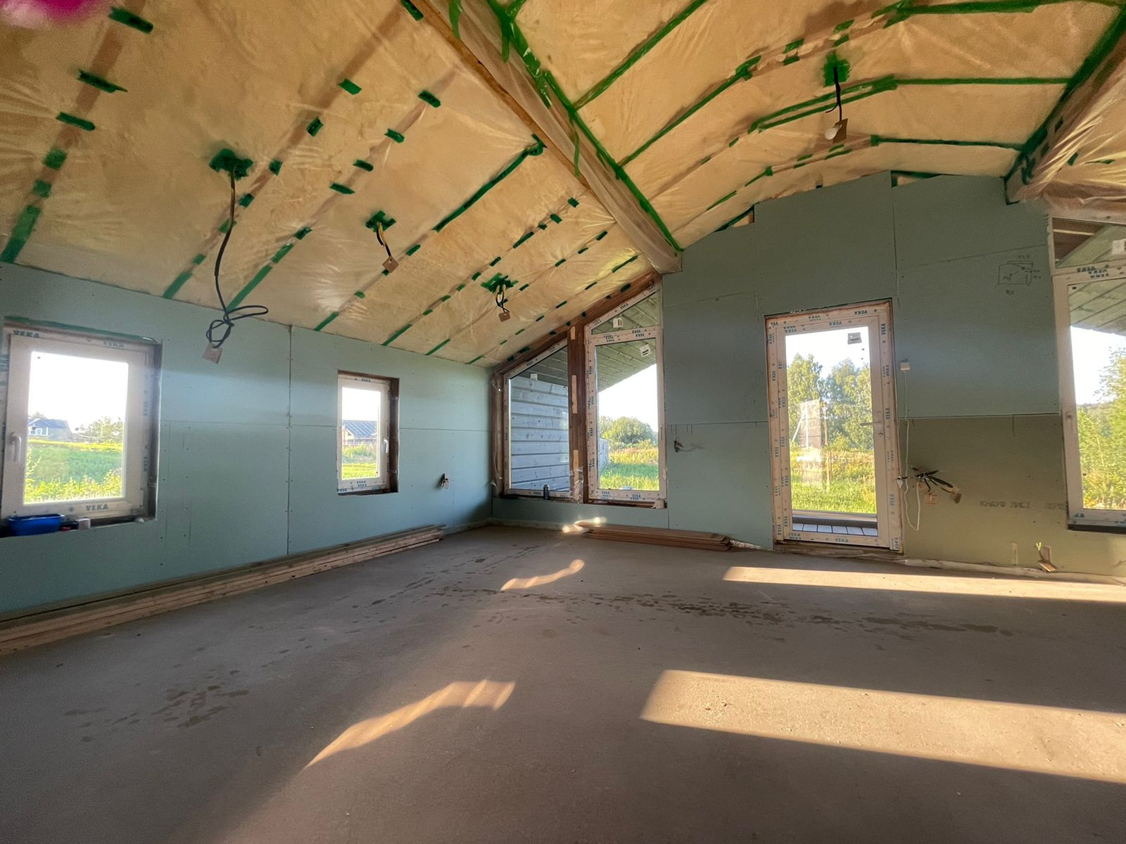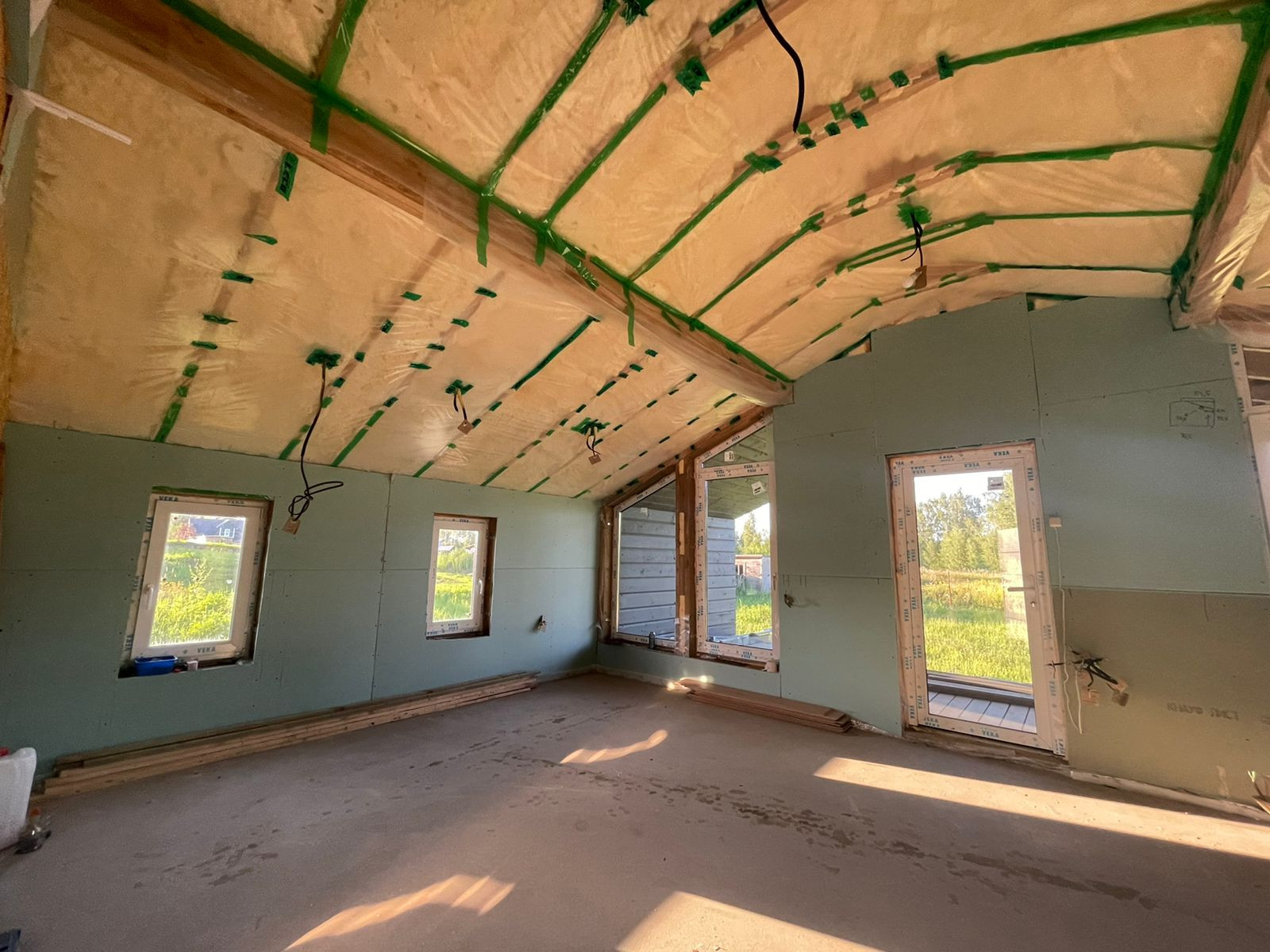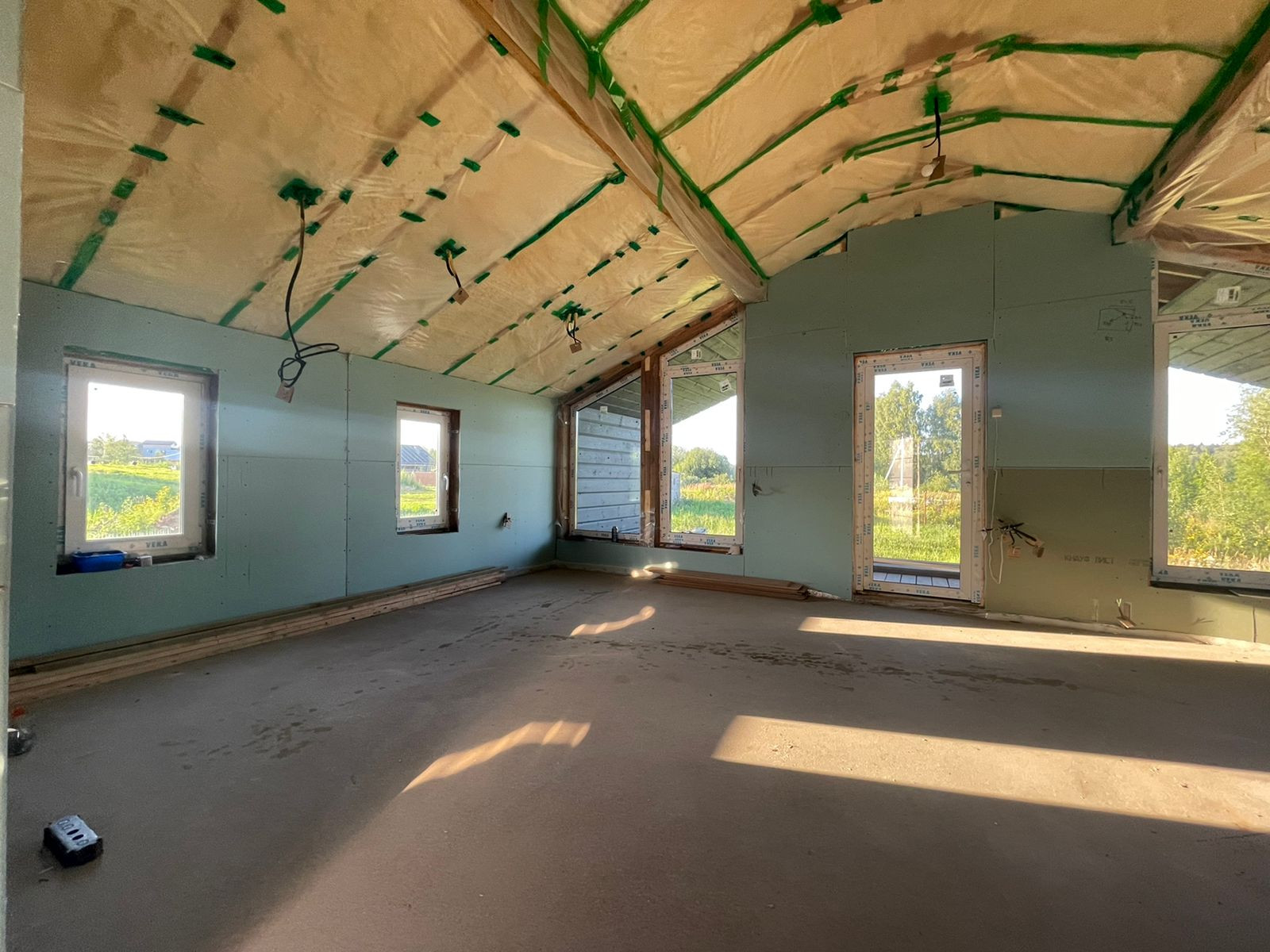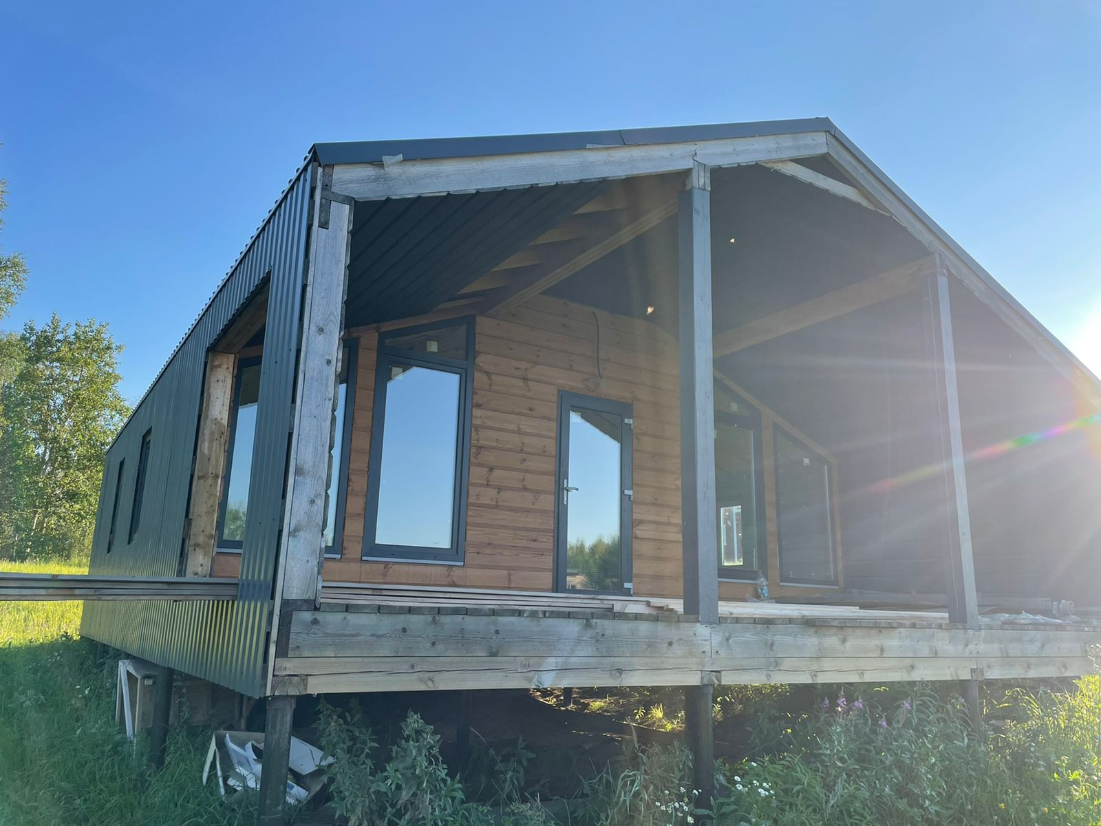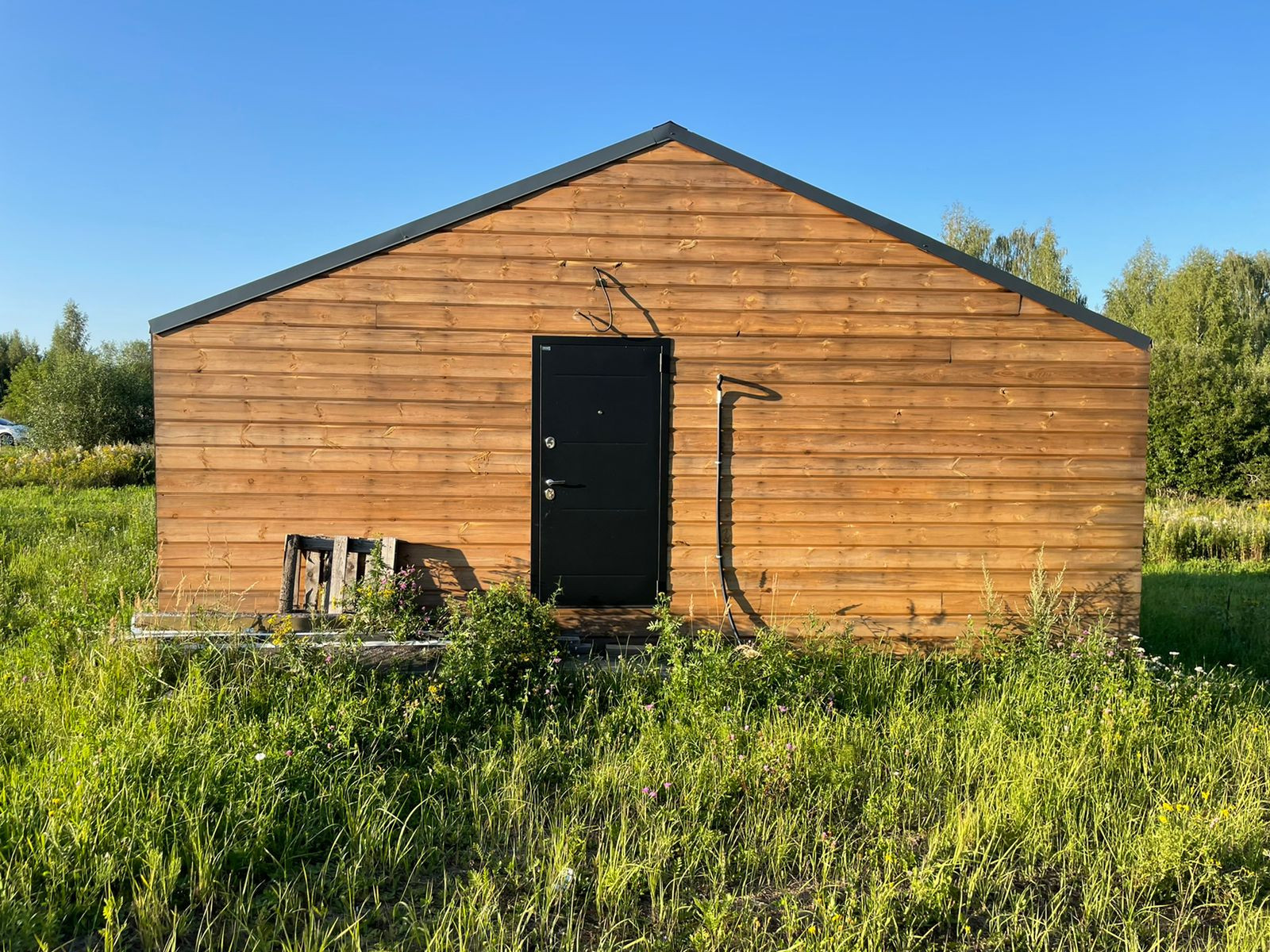 Дом 60 кв. м., каркасный (из строганной доски), обшитый железом. Под чистовую отделку. Установлены дорогие, двойные стеклопакеты. Сделано двойное утепление. Тёплые полы во всем доме. Установлен энергоэффективный котёл.  Дом строился для себя, поэтому на материалах не экономили. Подходит для круглогодичного проживания! Возможно переделать под баню, а рядом построить дом побольше, земли для этого более чем достаточно.