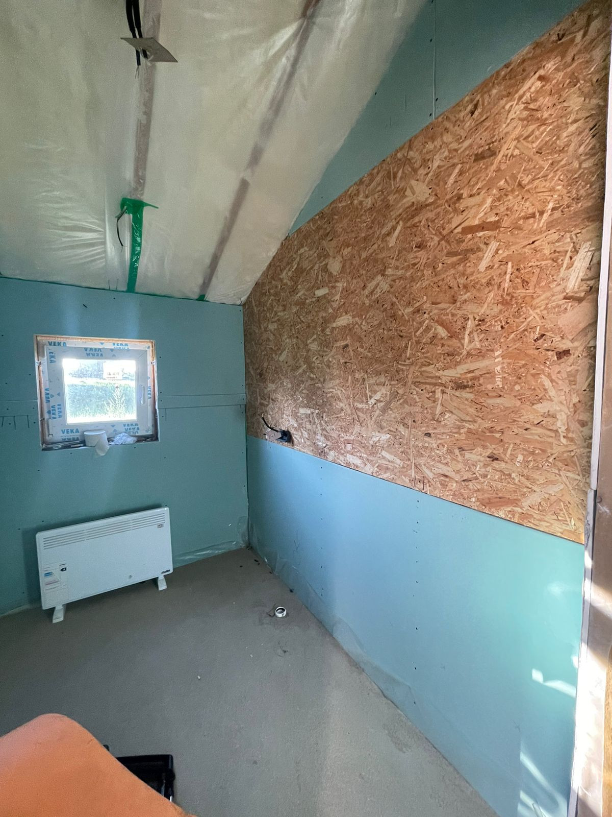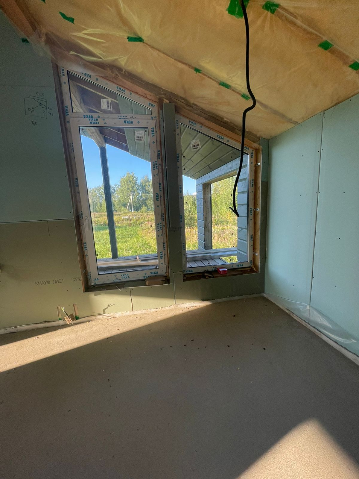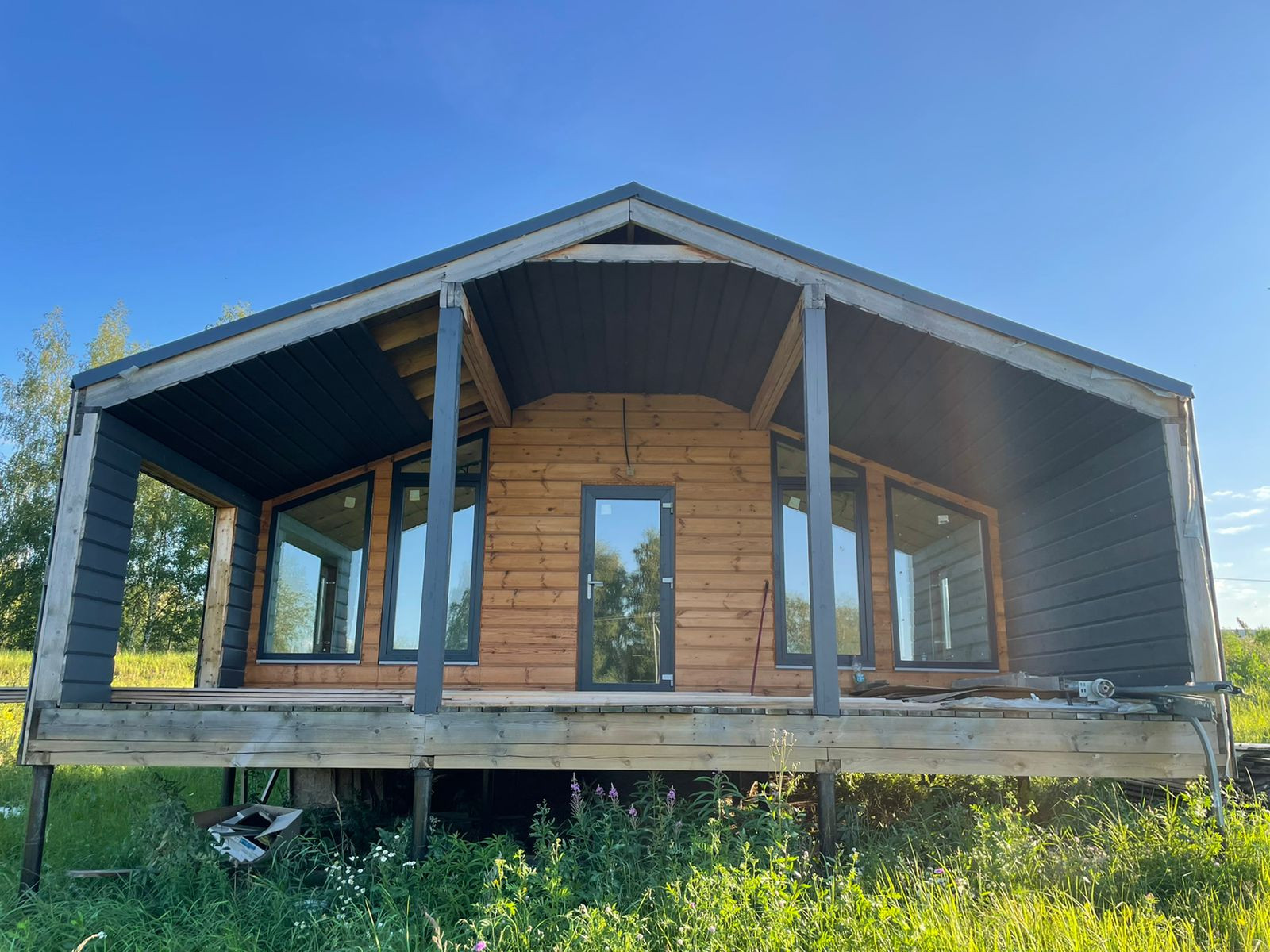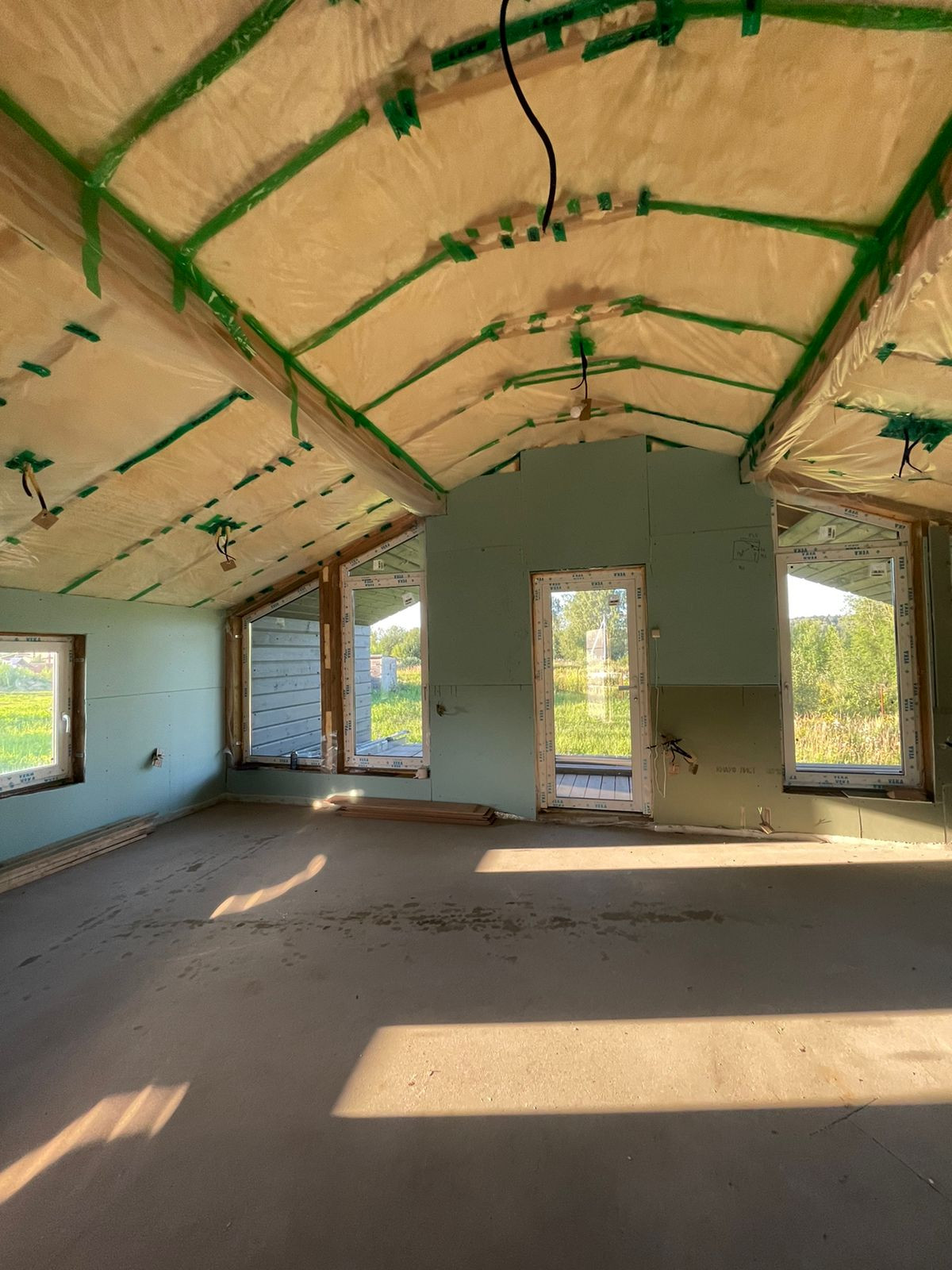 Дом 60 кв. м., каркасный (из строганной доски), обшитый железом. Под чистовую отделку. Установлены дорогие, двойные стеклопакеты. Сделано двойное утепление. Тёплые полы во всем доме. Установлен энергоэффективный котёл.  Дом строился для себя, поэтому на материалах не экономили. Подходит для круглогодичного проживания! Возможно переделать под баню, а рядом построить дом побольше, земли для этого более чем достаточно.