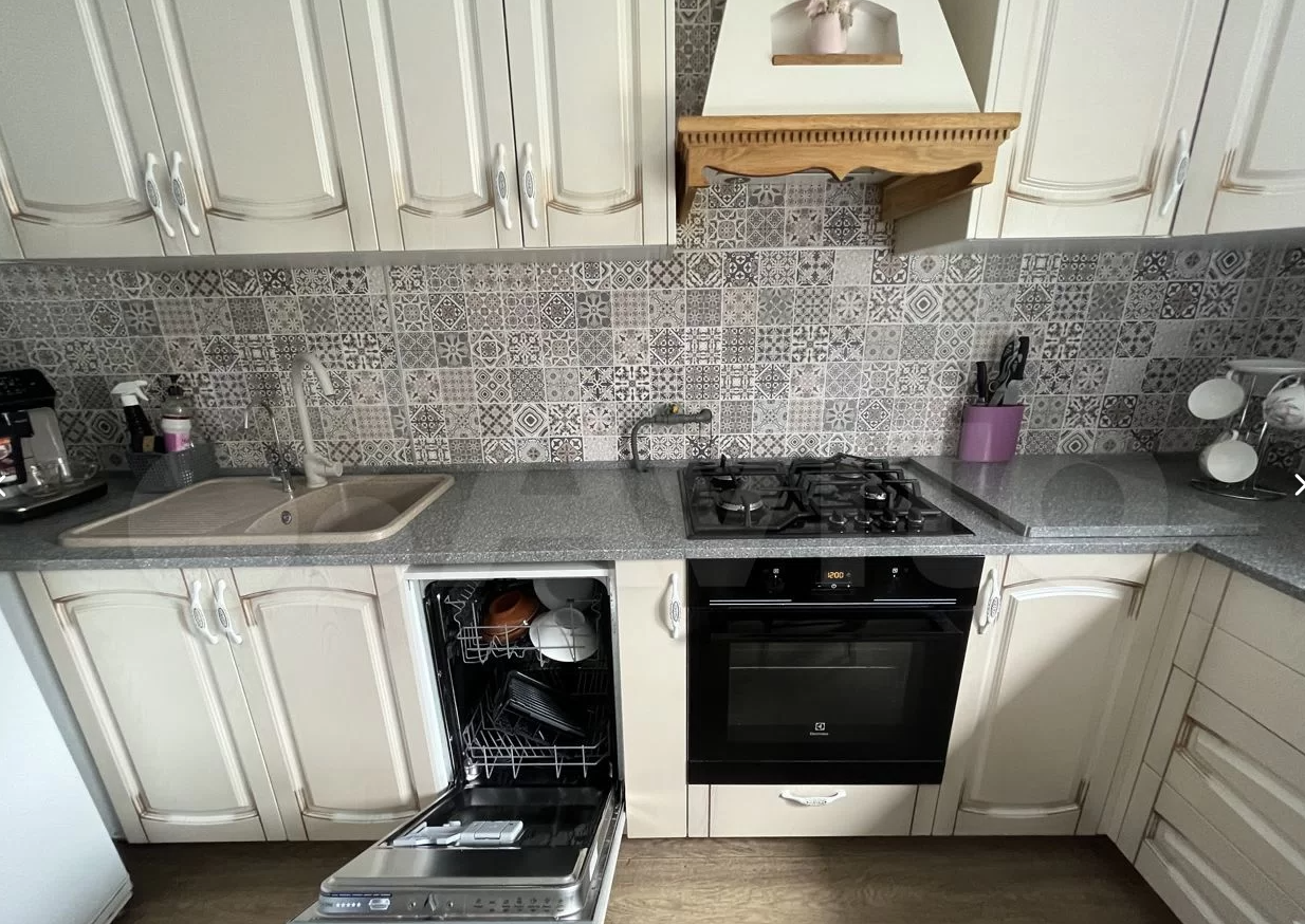Дом продается со встроенной кухней и техникой. Кухне всего пару лет, полотно столешницы переходит в барную стойку. Над ней доп свет.