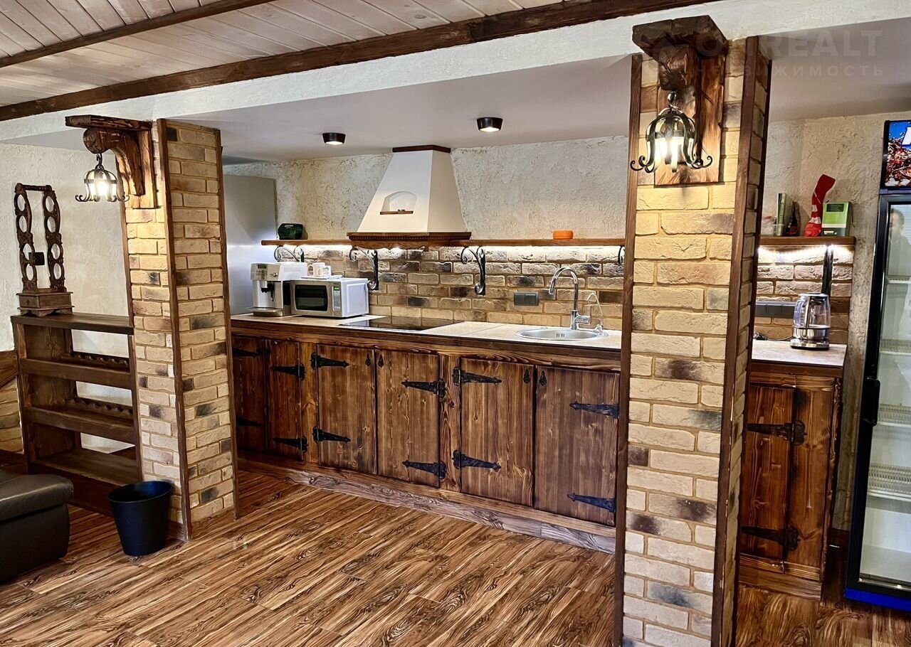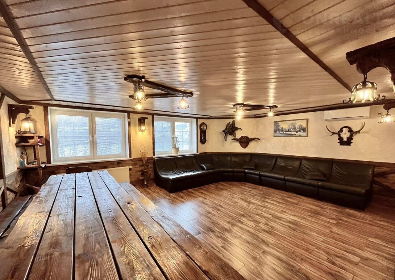 Большая гостиная с зоной кухни в стиле "Шале", две спальни, туалет, душевая, кладовая комната, которую (можно переделать под сауну), болерная.