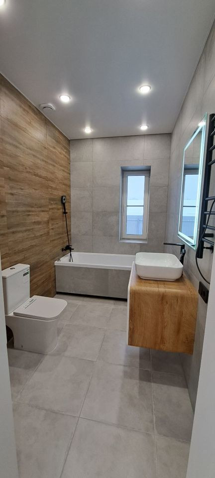 Дом Одноэтажный, большой холл, сан/узел стены отделка плитка, гардеробная, 3 отдельных комнаты, большая гостиная с кухней, бойлерная + сан/узел. Полы в доме с водяным подогревом , потолки натяжные, в 3х зонах разные обои (гостиная ,комнаты ,коридор). Входная металлическая дверь из массива дуба, есть второй выход из дома. Вокруг дома тротуарная плитка с водоотводом ливневых вод.