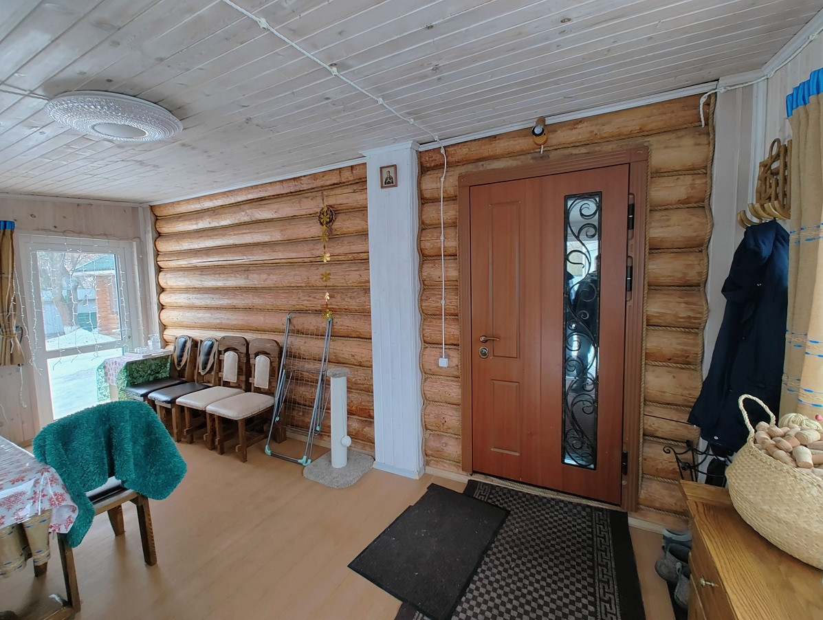 Дом авторской планировки, выполнен из зимнего вологодского леса ручной рубки в лапу. Бревна оцилиндрованы вручную под топор с сохранением заболони, утеплены между бревнами вологодским красным мхом, с уличной стороны утепление по канадской технологии «теплый шов perma chink», торцы зашиты блок-хаусом из сосны сорт А.