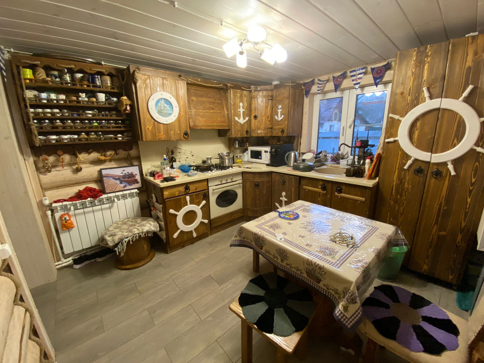 Окна – первый этаж деревянные, на чердаке стеклопакеты.