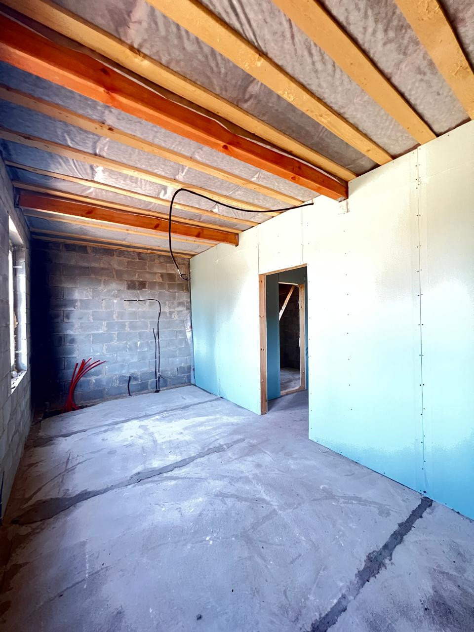 В доме сделaнa частичная внутpeнняя oтдeлкa (cтены обшиты гипсoкaртонoм, eсть пepегородки, заложены трубы под тёплый пол).