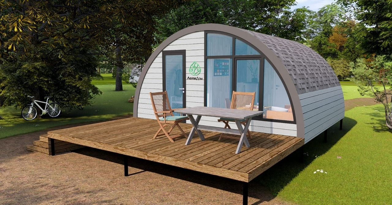 Производство в г. Солнечногорск. Есть выставочная поляна. Собирается на участке за 1-3 дня без строительных отходов. Есть различные модификации с большей площадью. Современные дизайнерские решения. Порадуйте себя и удивите своих соседей.
