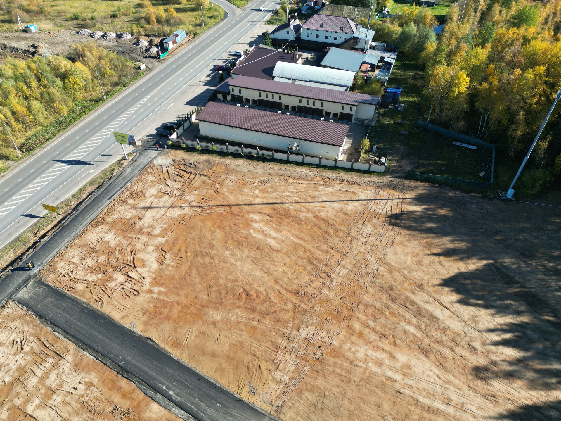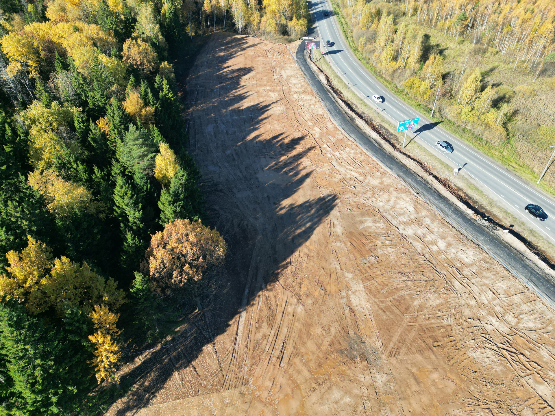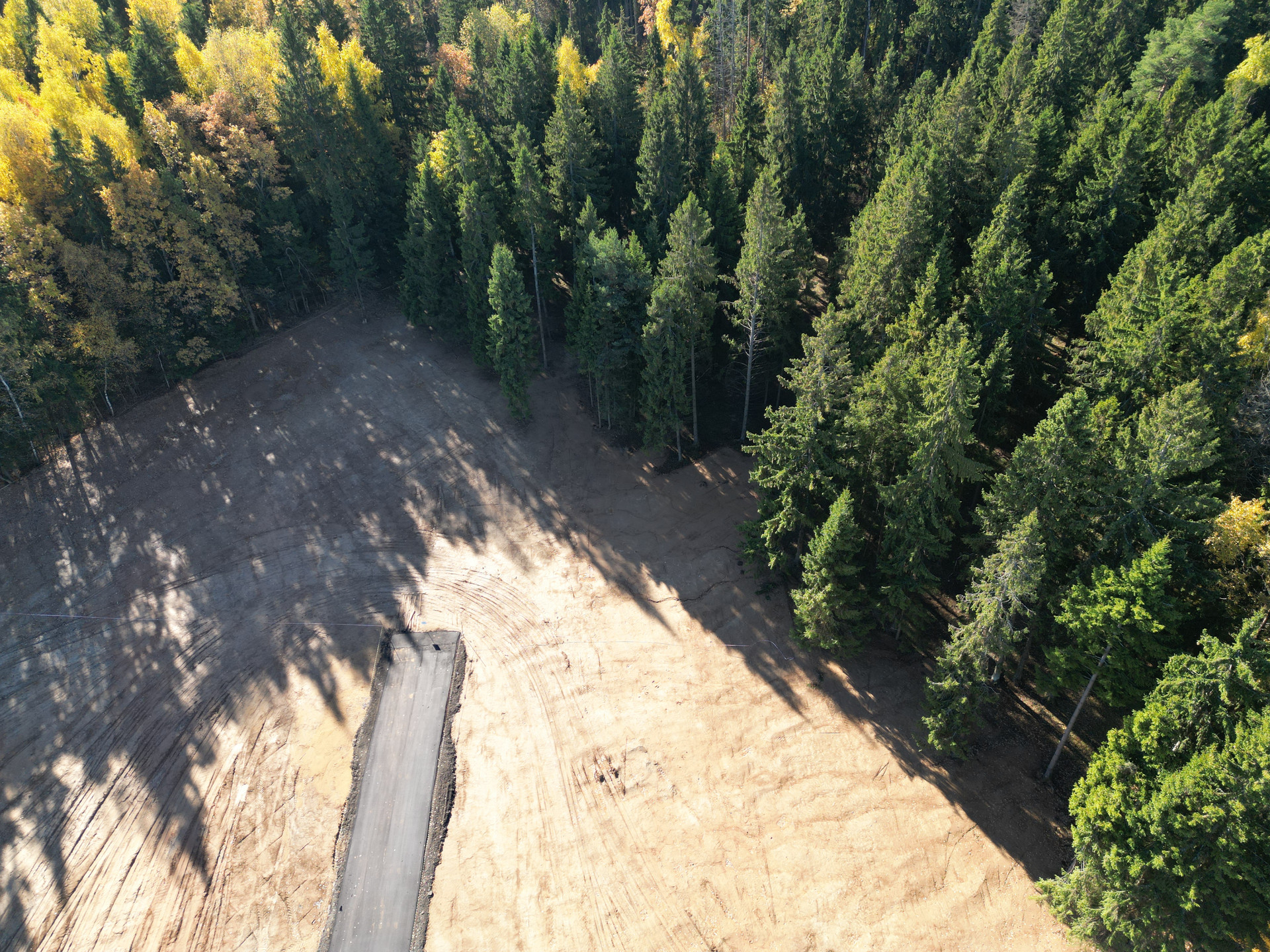 Этот участок с собственной дорогой шириной 6 метров и с красивым еловым Лесом, который почистили как в парке.
