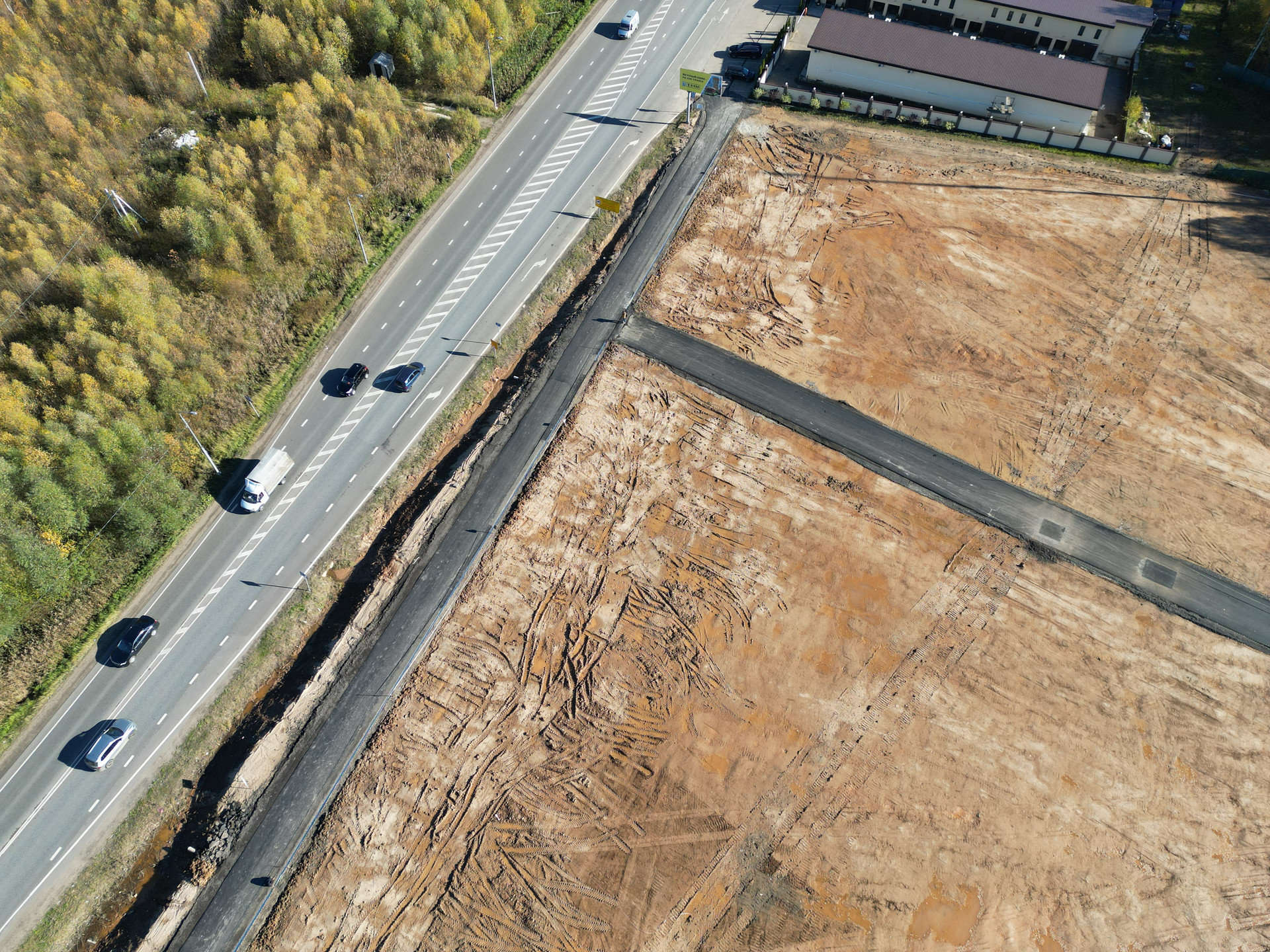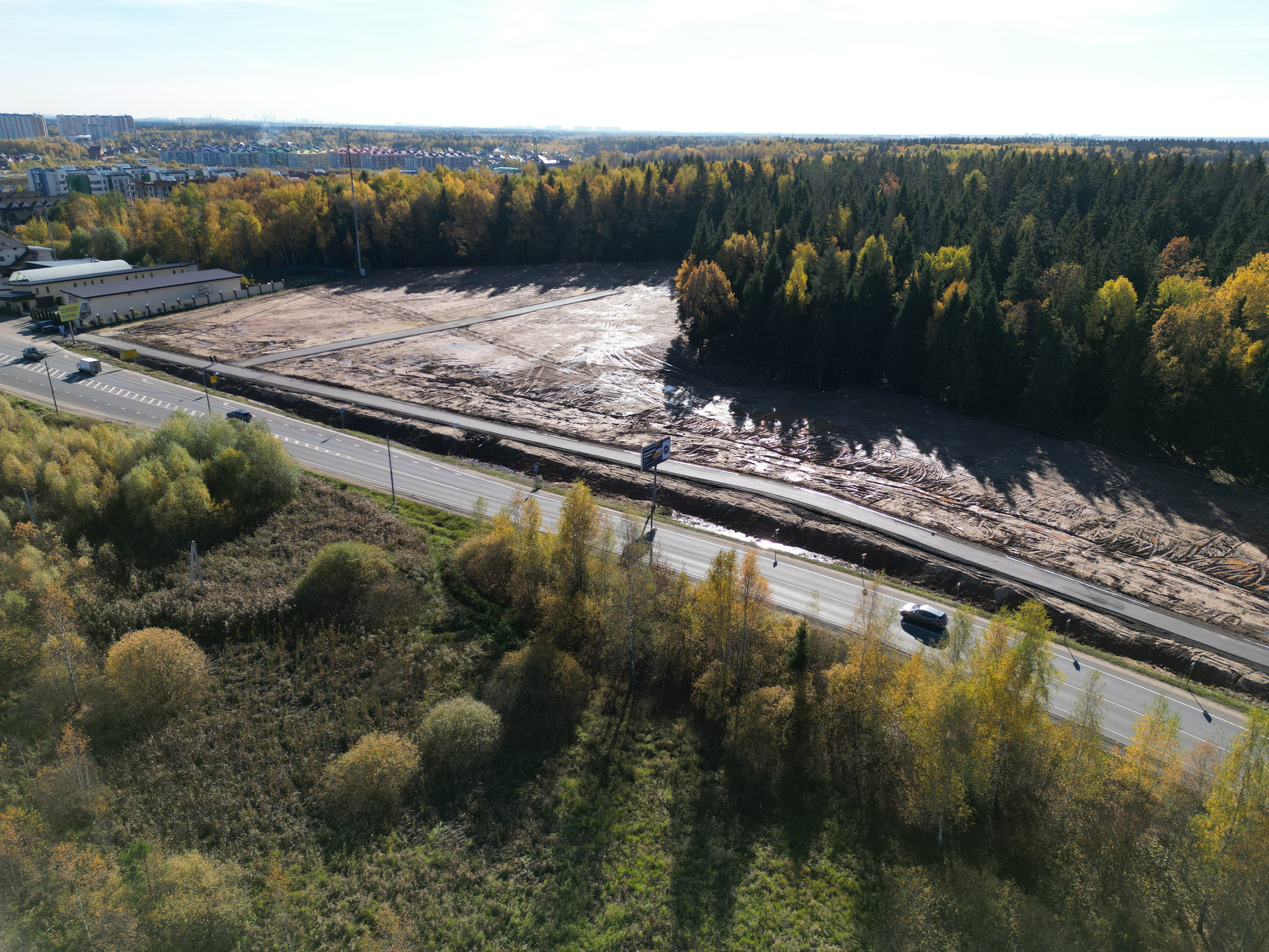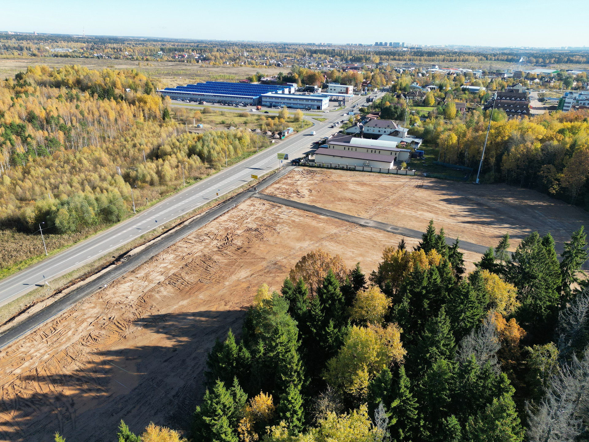 Этот участок с собственной дорогой шириной 6 метров и с красивым еловым Лесом, который почистили как в парке.
