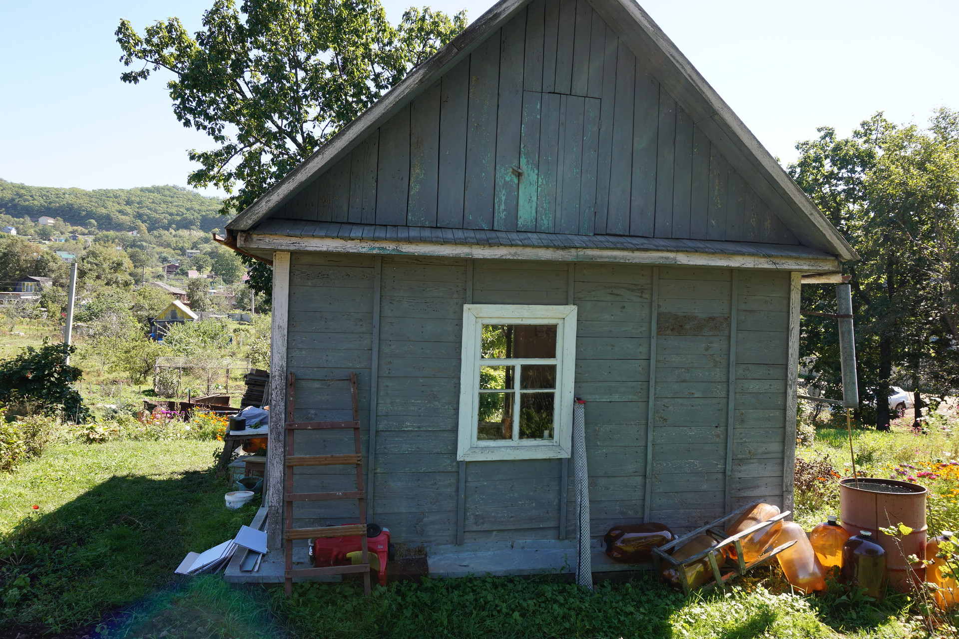 На участке построен небольшой дачный дом.