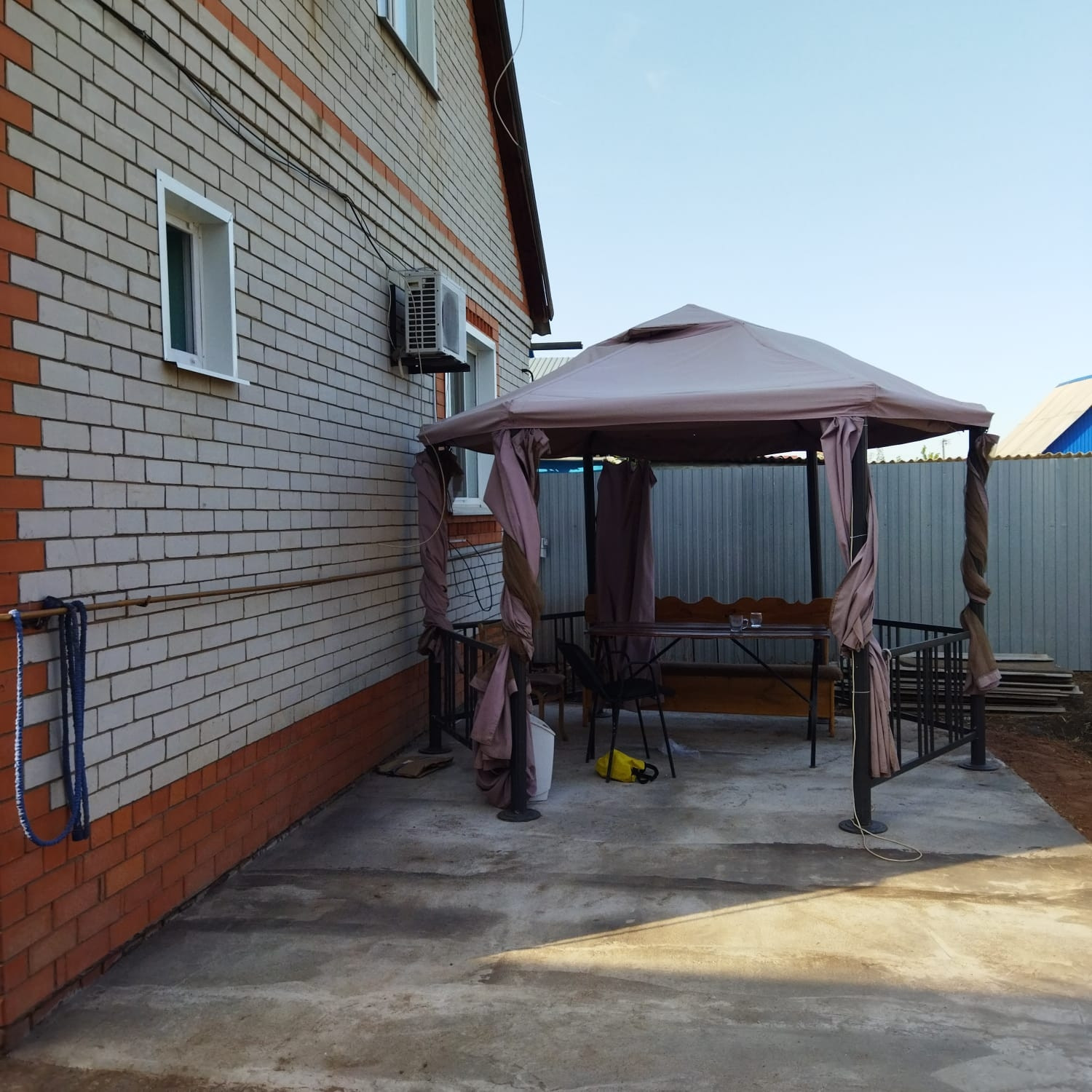 шлакоблок,обложенный кирпичом.Участок 4.5 сотки. Двор полностью асфальтирован, придомовая территория асфальтирована. Есть баня(на газу, отдельный счетчик), гараж с погребом и сарай. Все постройки обшиты блокхаусом+заменена крыша.Полная реконструкция отопления в 2021 году(новый котел лемакс,с большим запасом, 2 насоса). 2 новые, раздельные канализации . Новый современный санузел. Новый газовый счетчик на дом, новый счетчик на воду. 3 сплит системы, интеренет+ТВ.Есть возможность оставить всю мебель по договорённости. Возможна продажа с готовым работающим бизнесом(салон красоты). Либо открыть свой. Документы на использование участка под предпринимательскую деятельность оформлены.