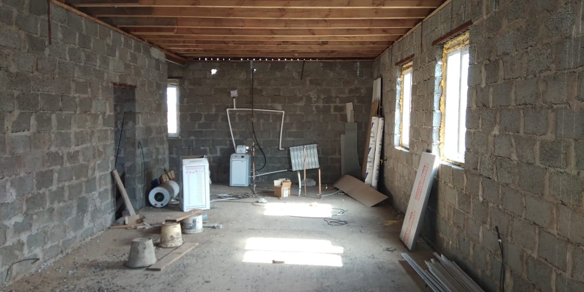 Дом, новострой. Пущен в эксплуатацию, подключен газ через счетчик, электричество через счетчик. В доме есть погреб 2х2, выложен кирпичом, выведены коммуникации на улицу от канализации и на ввод воды, электрика проложена в полу. Окна трехкамерные, дверь с утеплителем. Крыша с подготовкой под мансарду (2 этаж).
