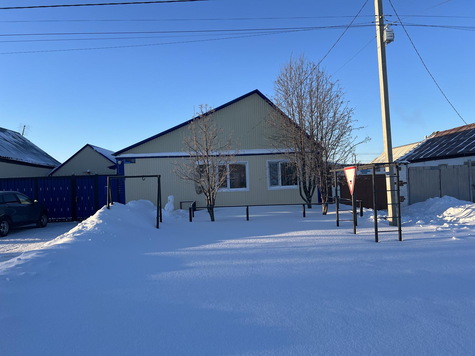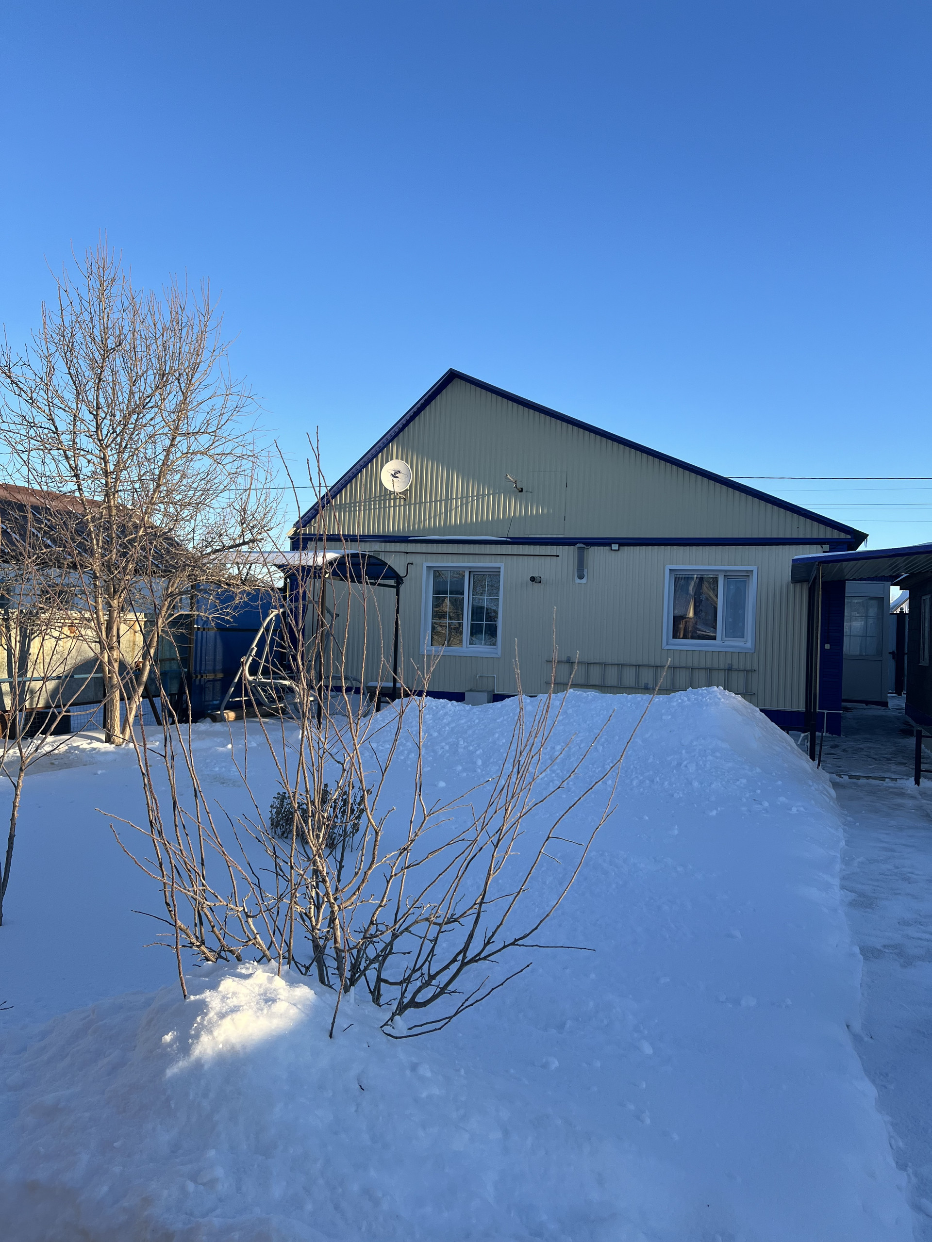 Продам дом с земельном участком. В доме сделан ремонт, теплые полы, сплит-система, остается:  кухонный гарнитур с встроенной дорогой бытовой техникой (вытяжка, варочная панель, духовой шкаф, посудомоечная машина), большая вместительная входная группа (прихожая), остальная мебель по договоренности. Имеются надворные постройки, гараж - установлены электронные ворота, мангальная зона, теплица, баня. Зона отдыха: качели, газон. Двор полностью выложен тротуарной плиткой. Школа, детский сад, почта, магазин в шаговой доступности. Просмотр по предварительному звонку.