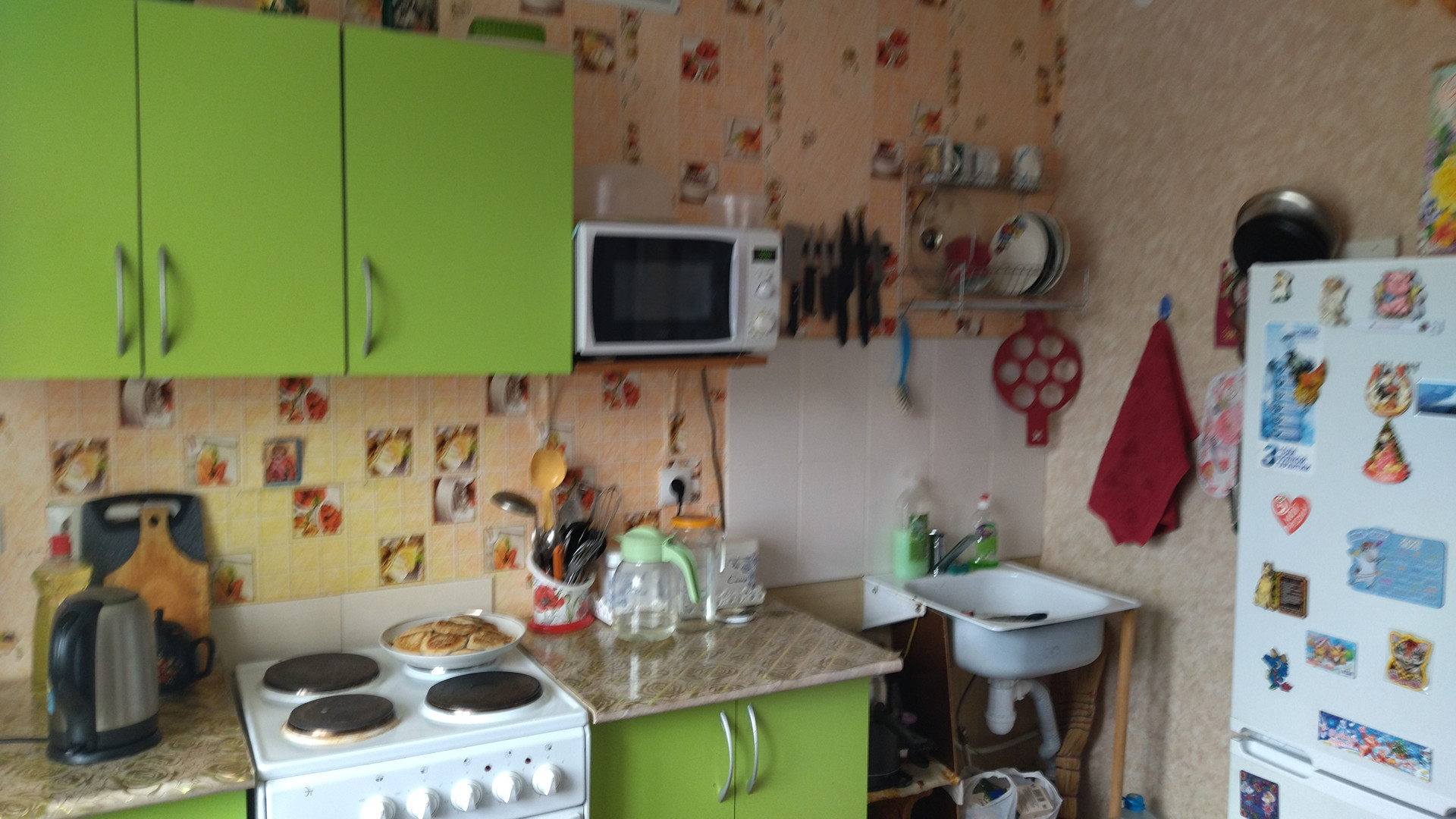 Кухня вместительная , квадратная
