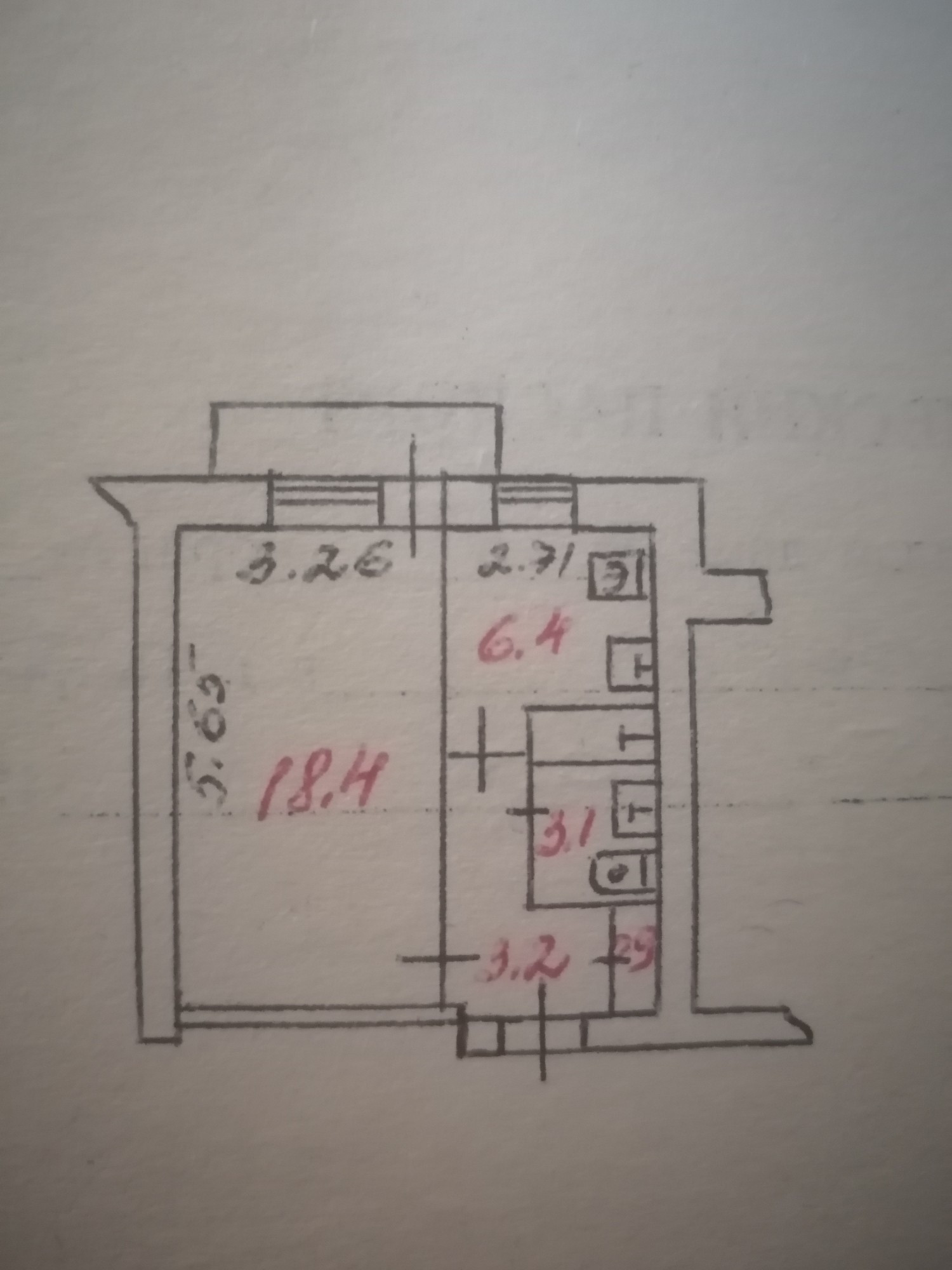 Жилая площадь 18.4 м2