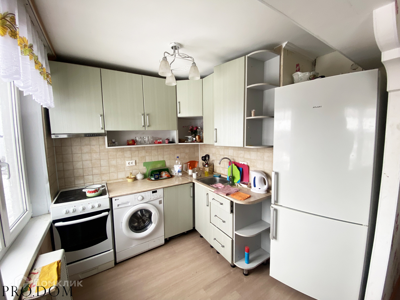 В квартире остаётся кухонный гарнитур со встроенной бытовой техникой (всё работает). Стиральная машинка тоже остаётся будущим хозяевам, а также вся мебель, что представлена на фото.