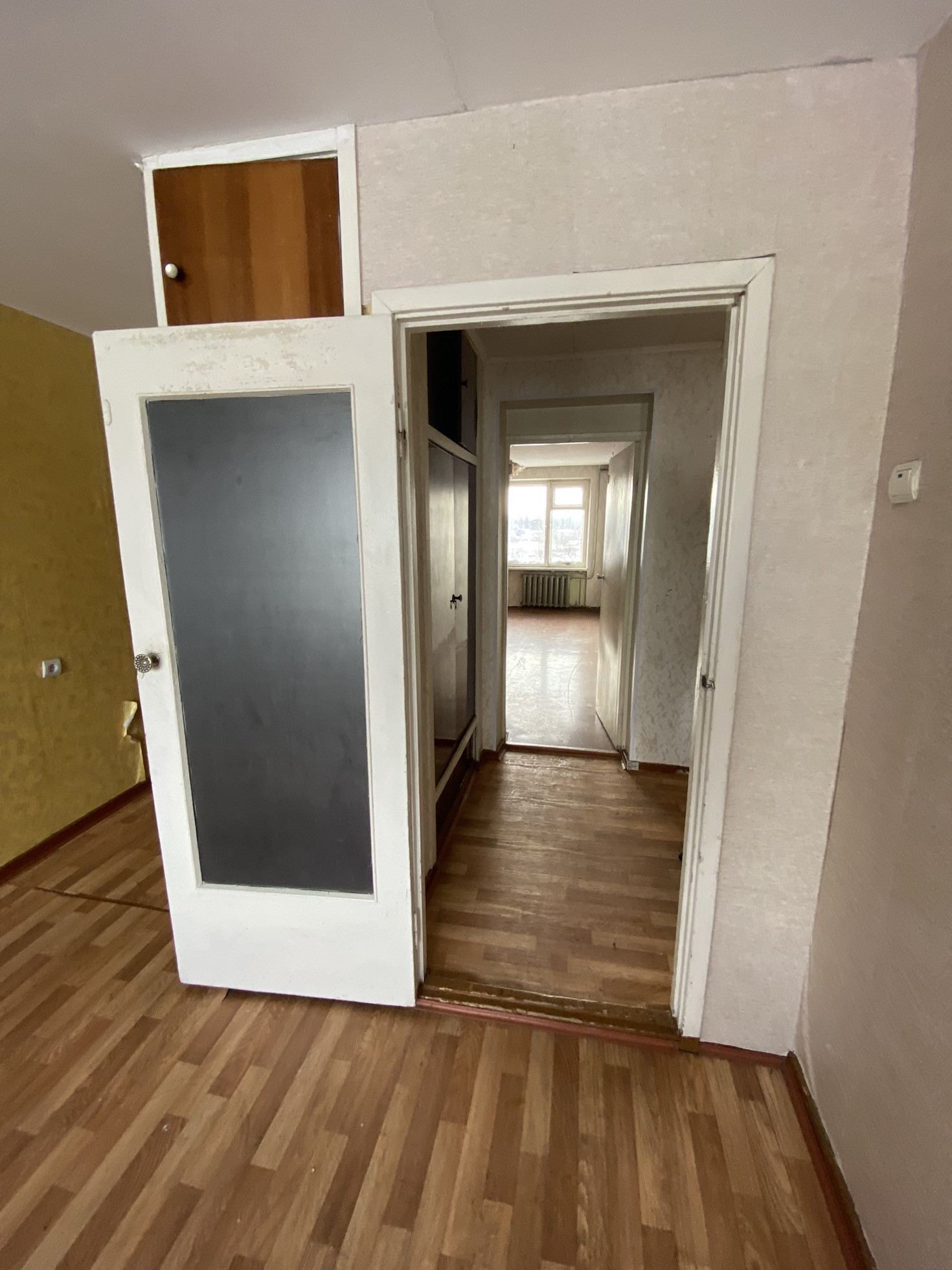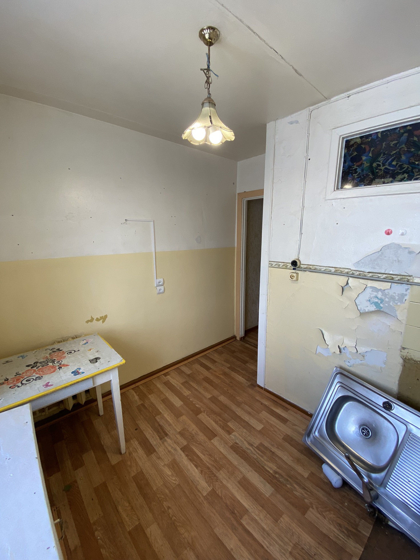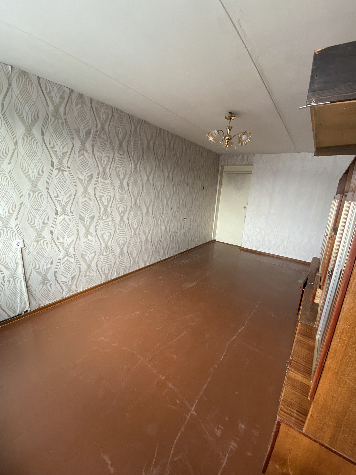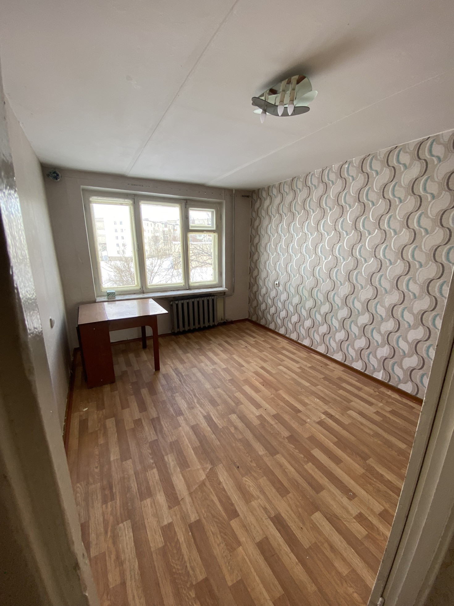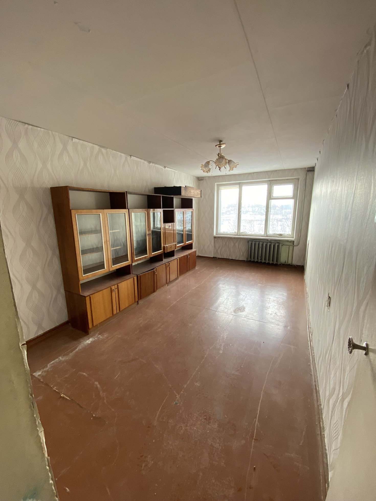 Квартира светлая, почти пустая. Требует ремонта.
