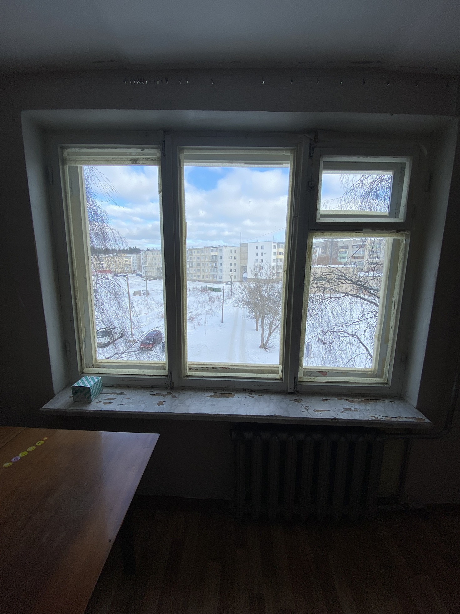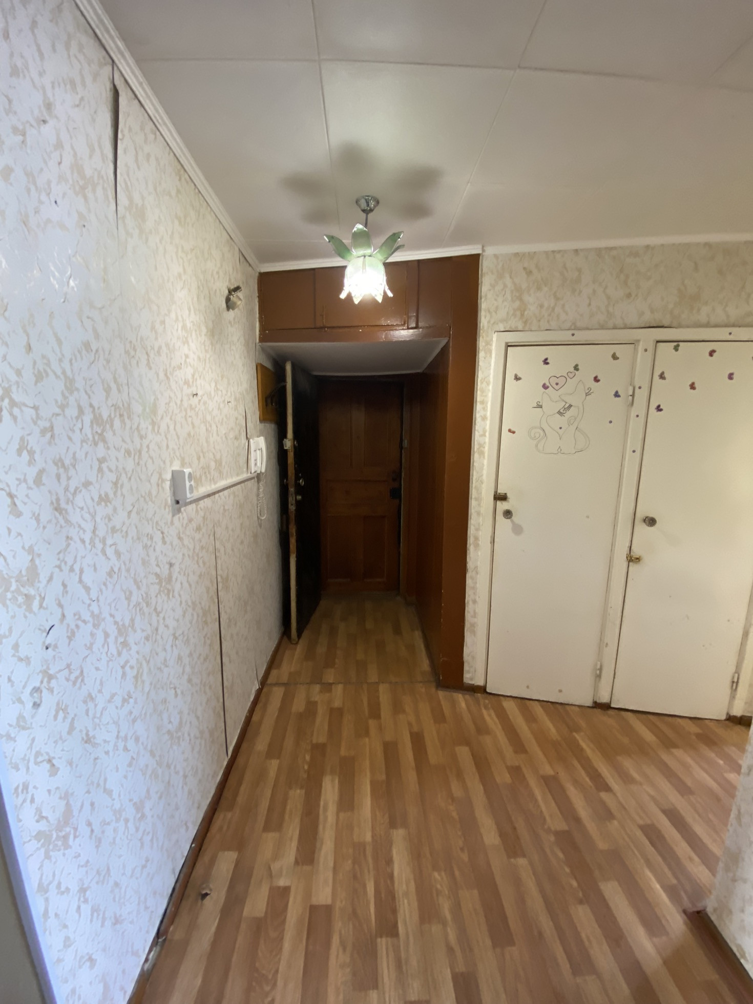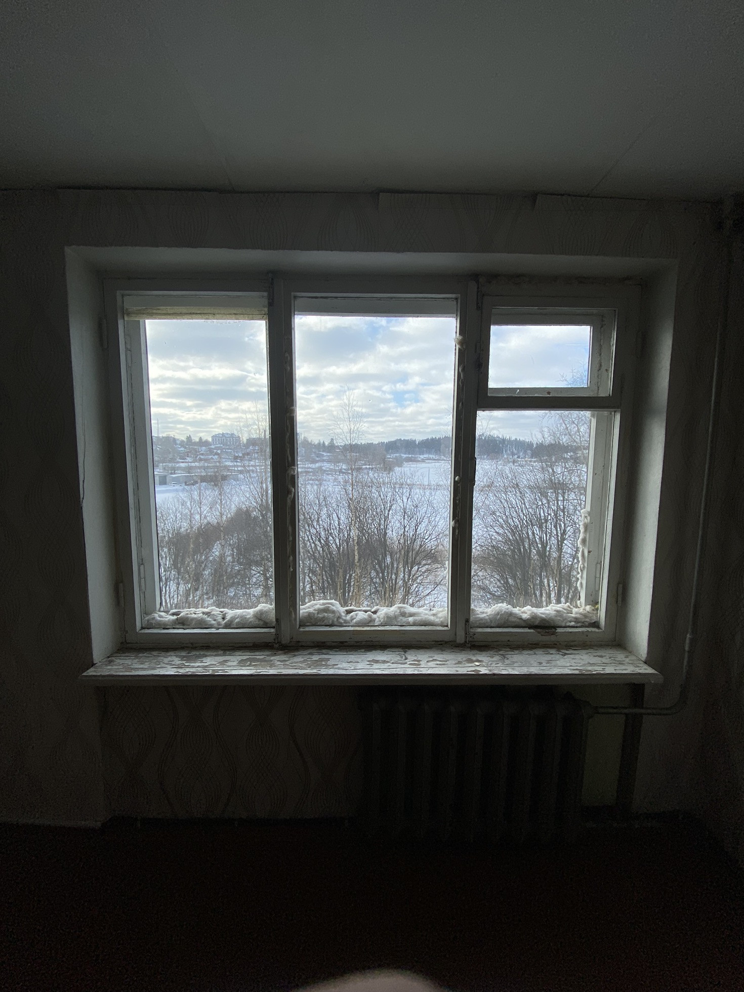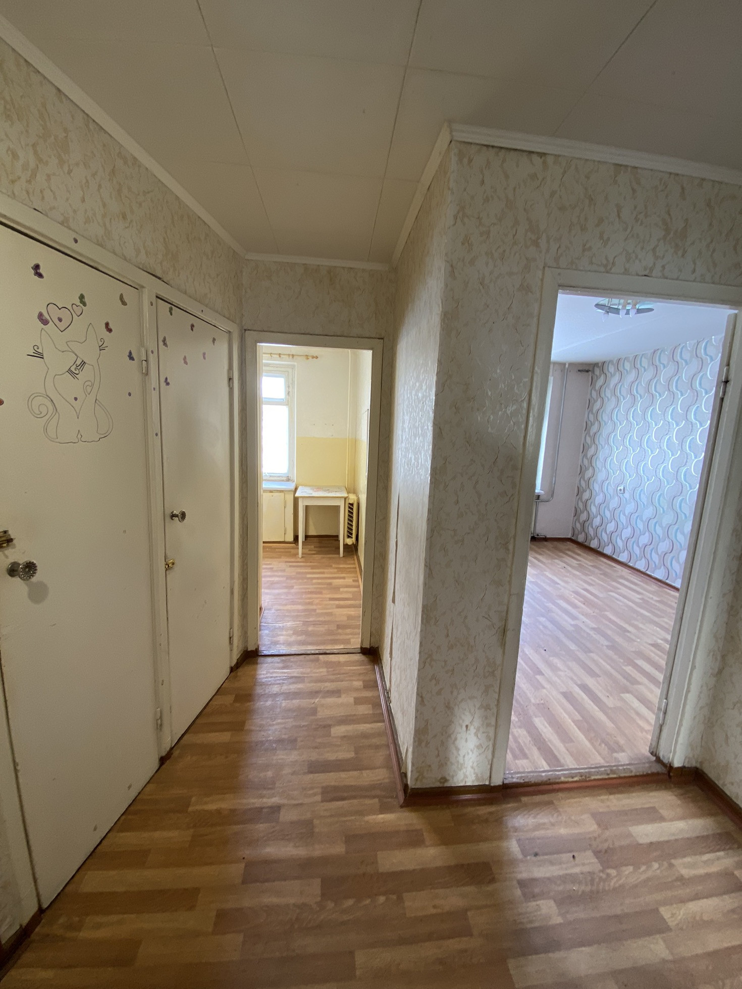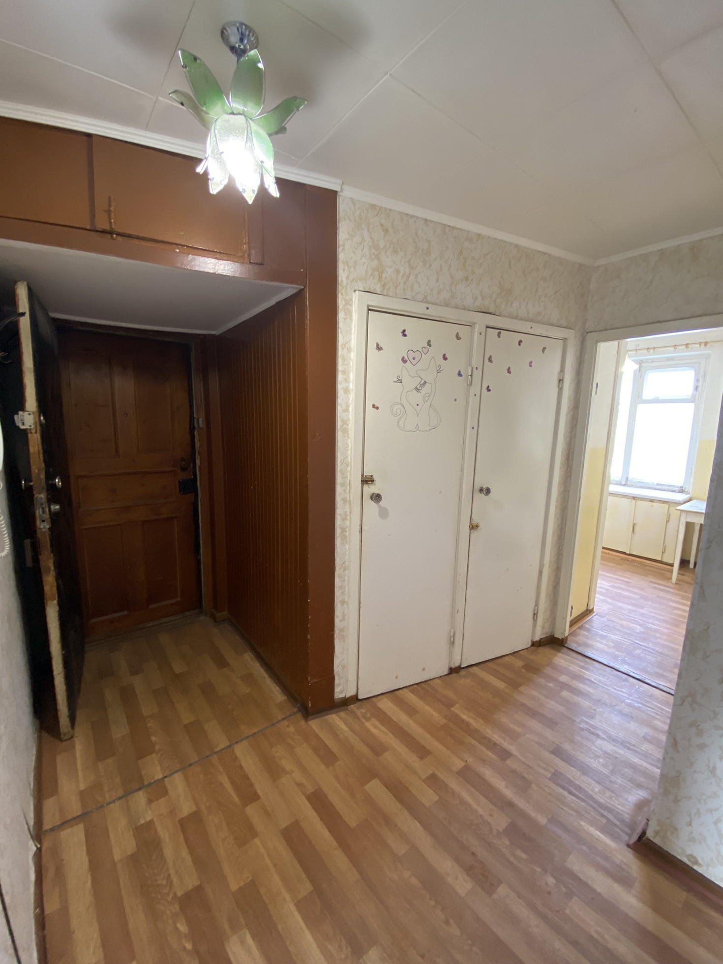 Квартира светлая, почти пустая. Требует ремонта.