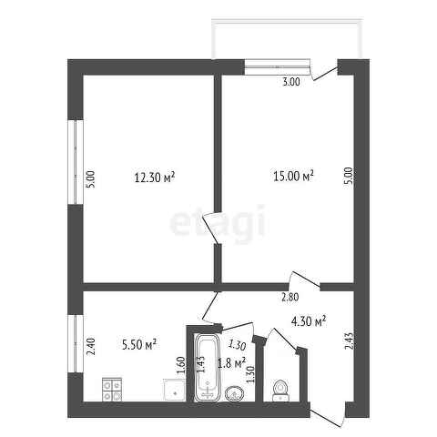 Общая площадь 39.9 м2