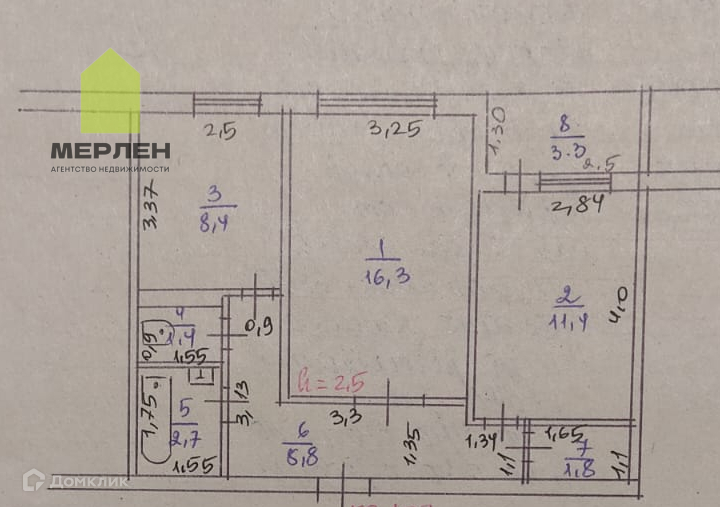 Общая площадь 50.8 м2