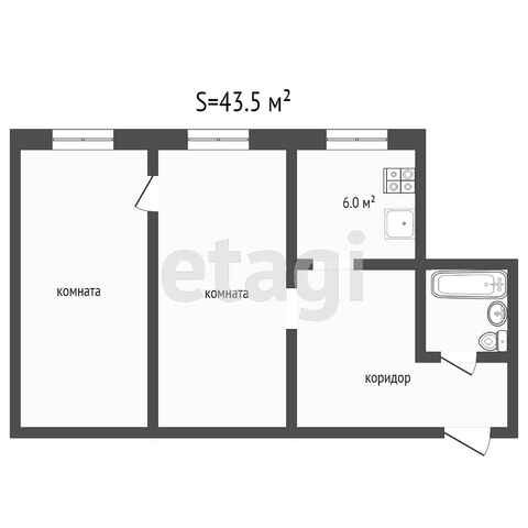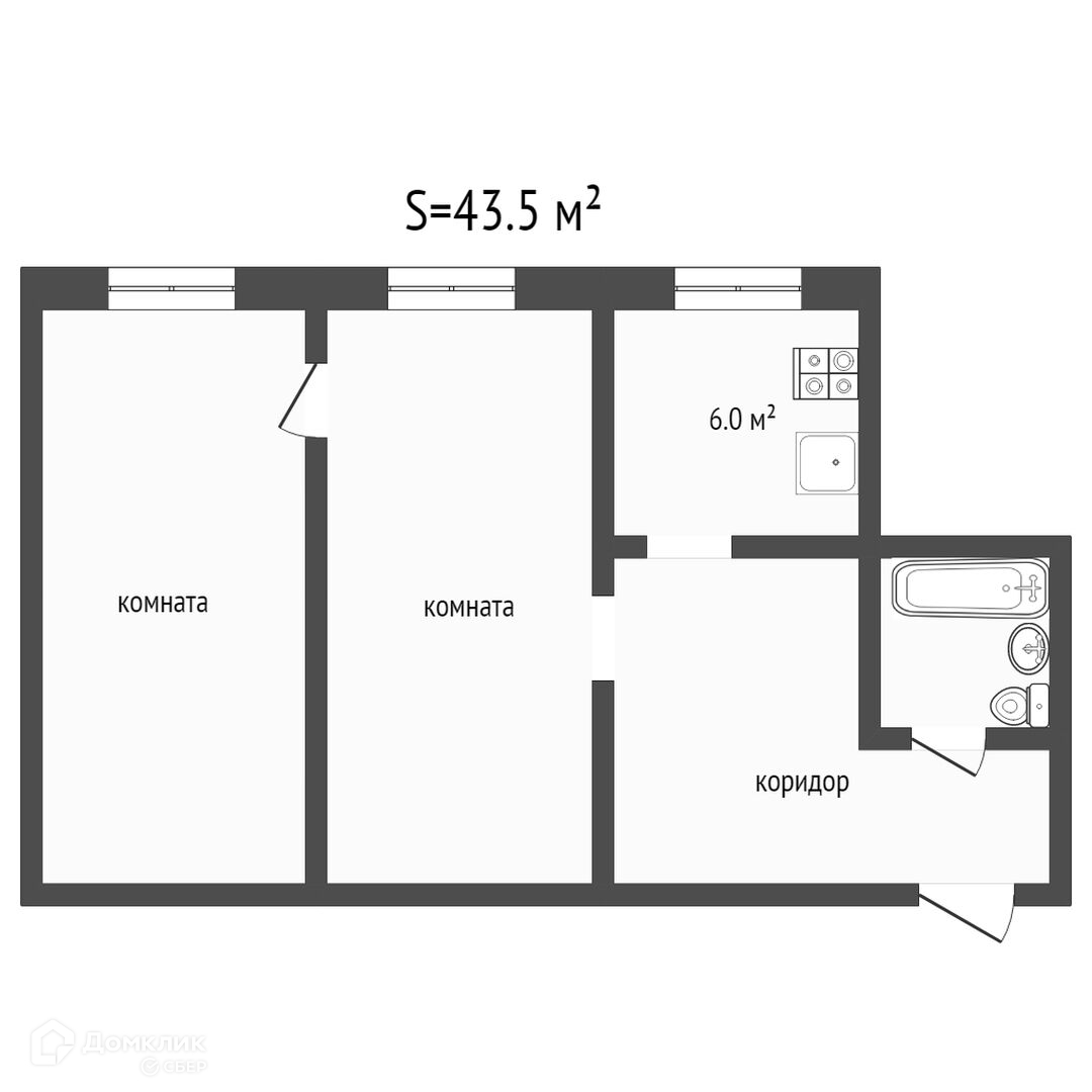Общая площадь 43.5 м2