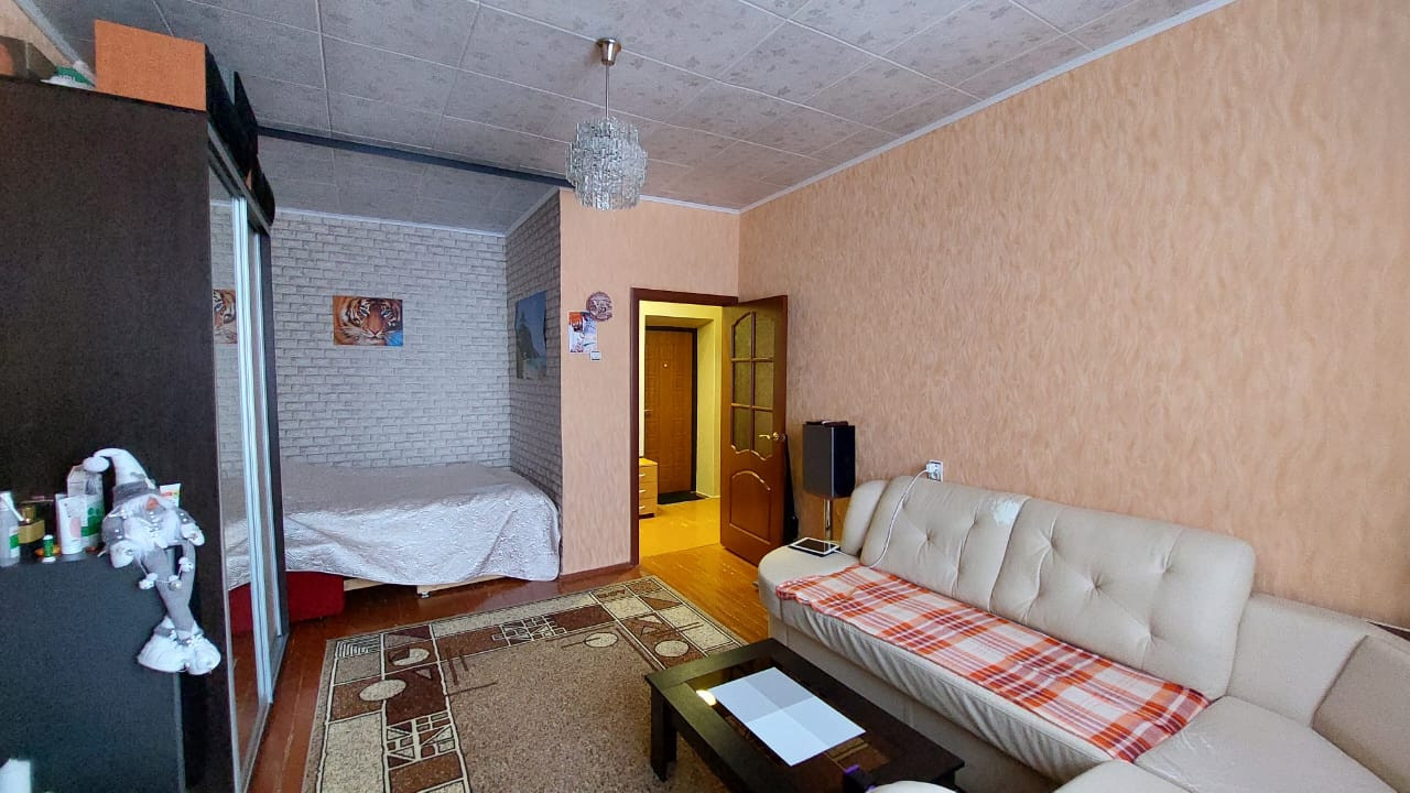 Окна ПВХ, лоджия застеклена ПВХ. Межкомнатные двери заменены, входная дверь металлическая. Санузел совмещён. Мебель остается.