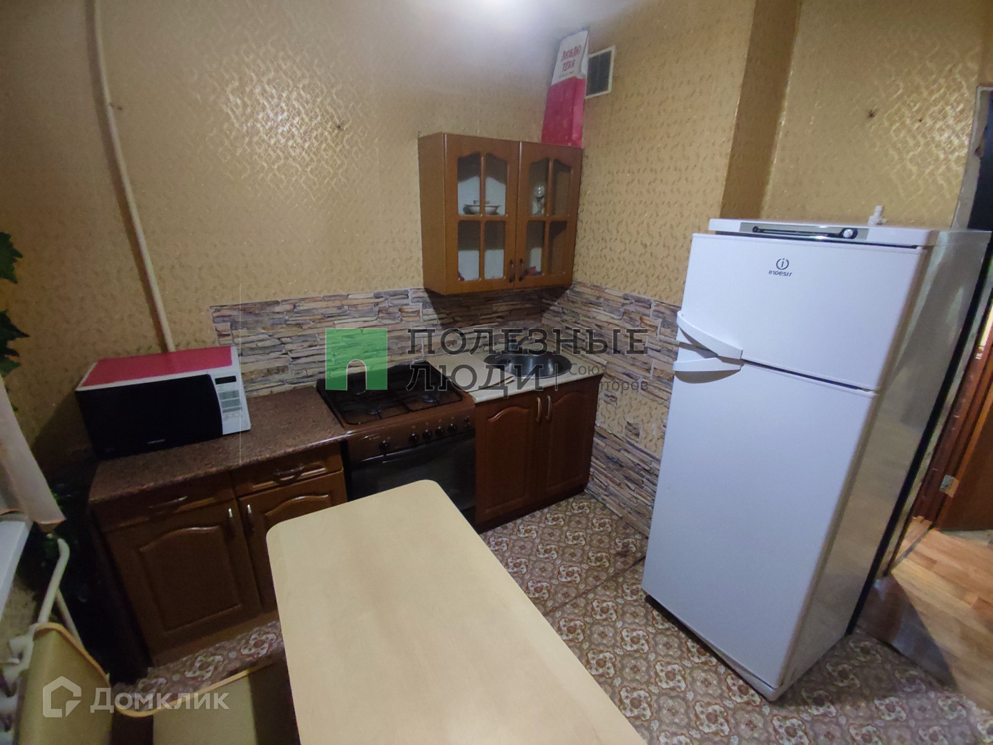 Остаётся вся мебель и техника: холодильник Indesit, стиральная машина, два дивана, шкаф, микроволновка и кухня. Заезжай и живи!