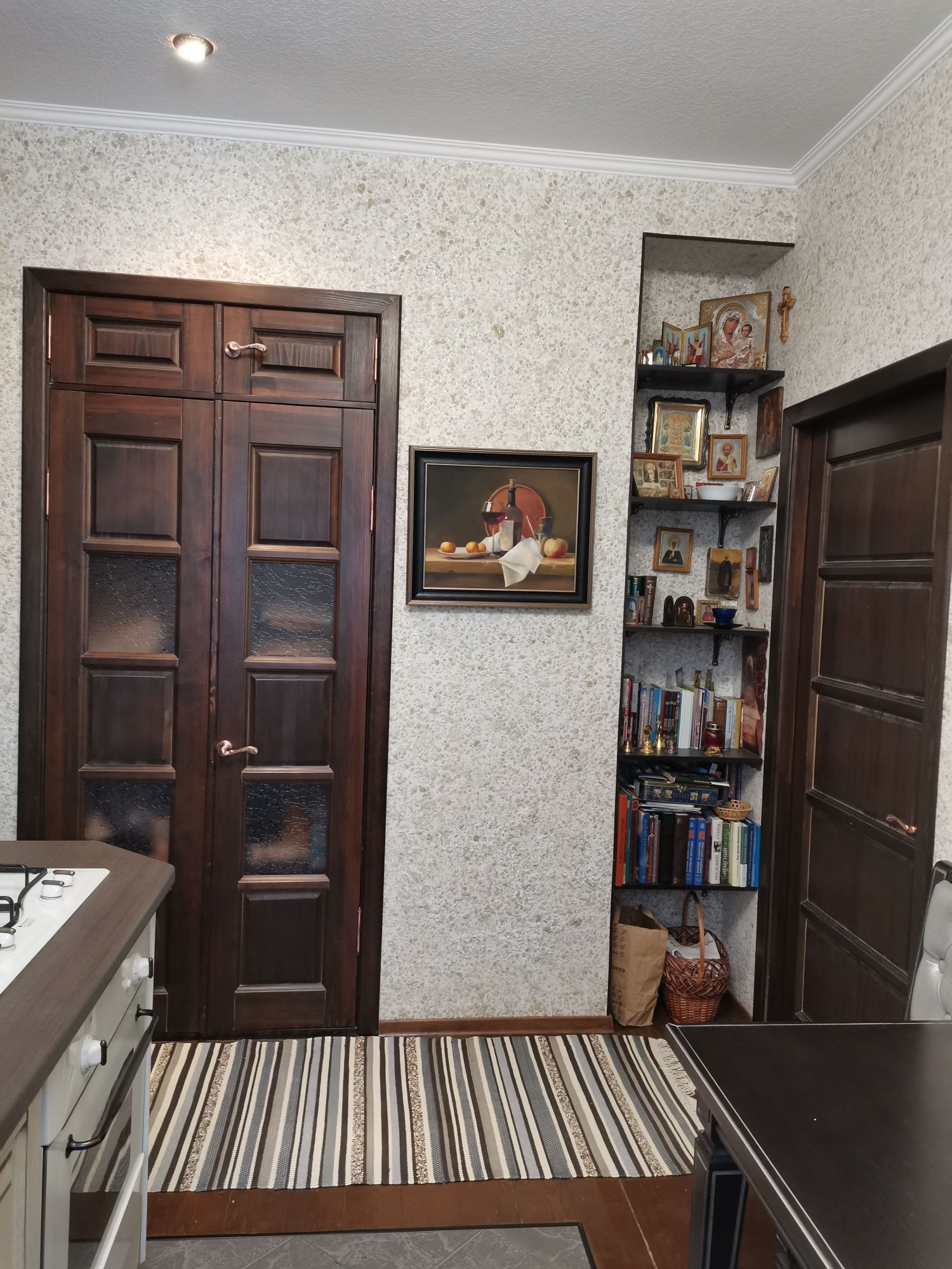 Сталинка. В квартире сделан полный ремонт: заменили трубы, батареи, сантехника, полы и лаги, под полом утеплитель, оштукатурены и выровнены стены. Счетчики на воду и на газ. Квартира светлая и теплая. Пол сосна, ванна-теплый пол. Вежливые, тихии соседи. Торг.