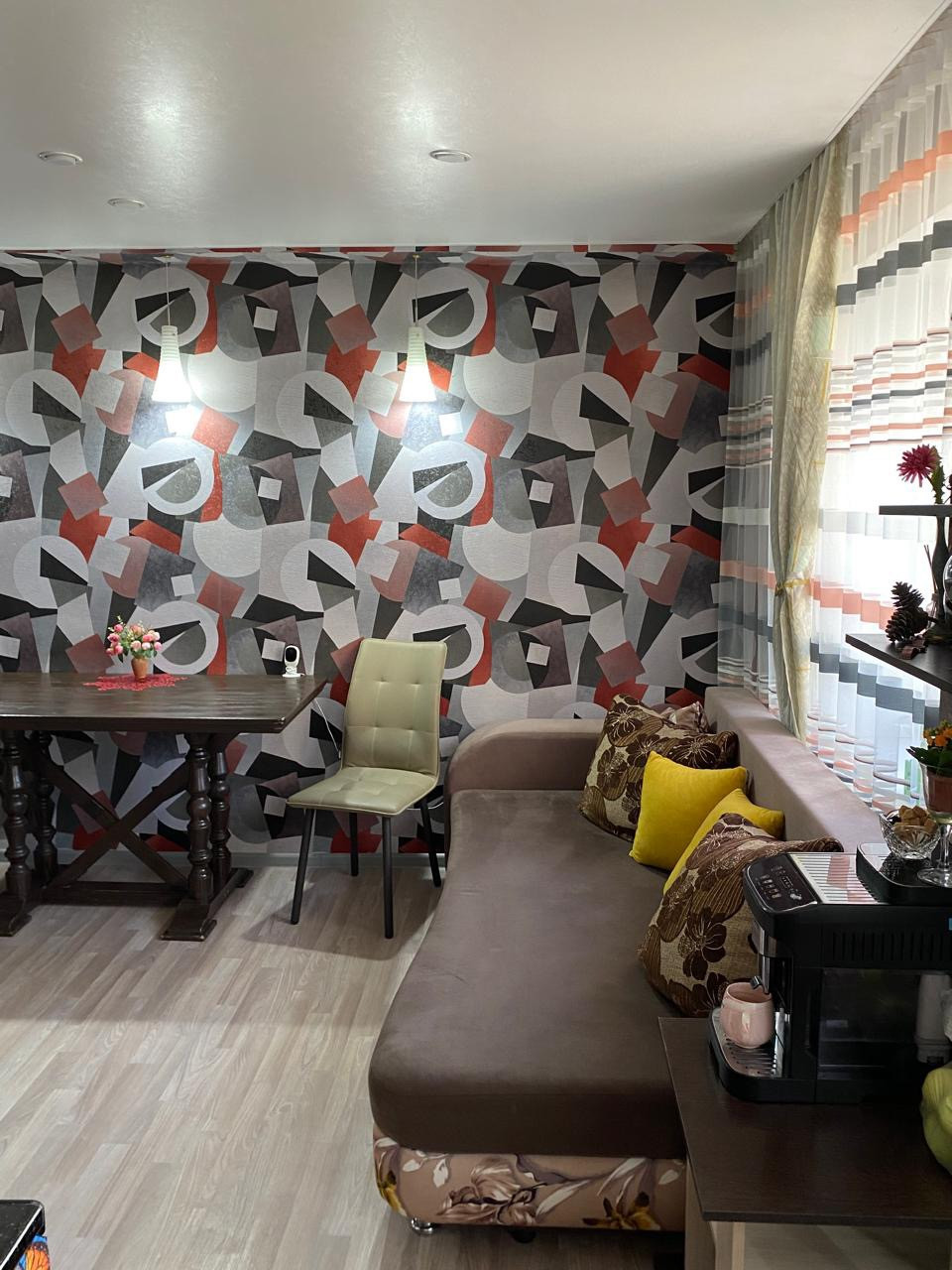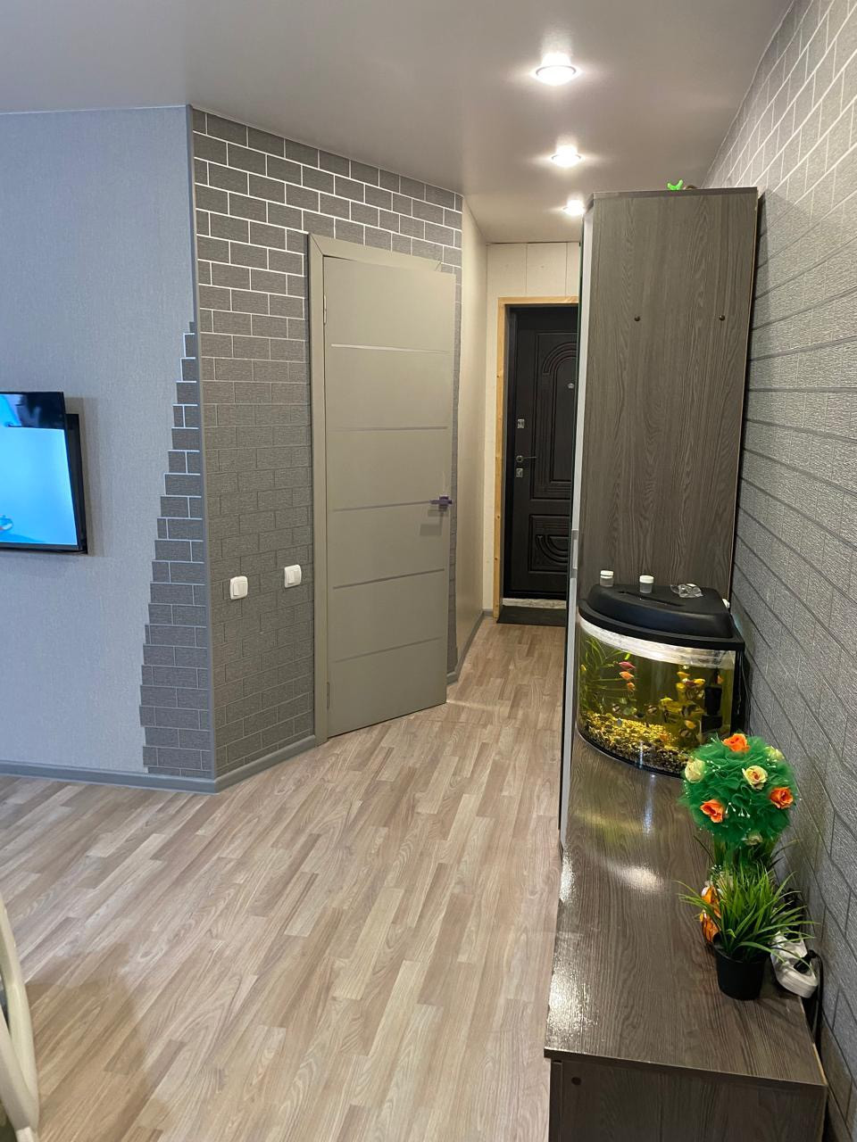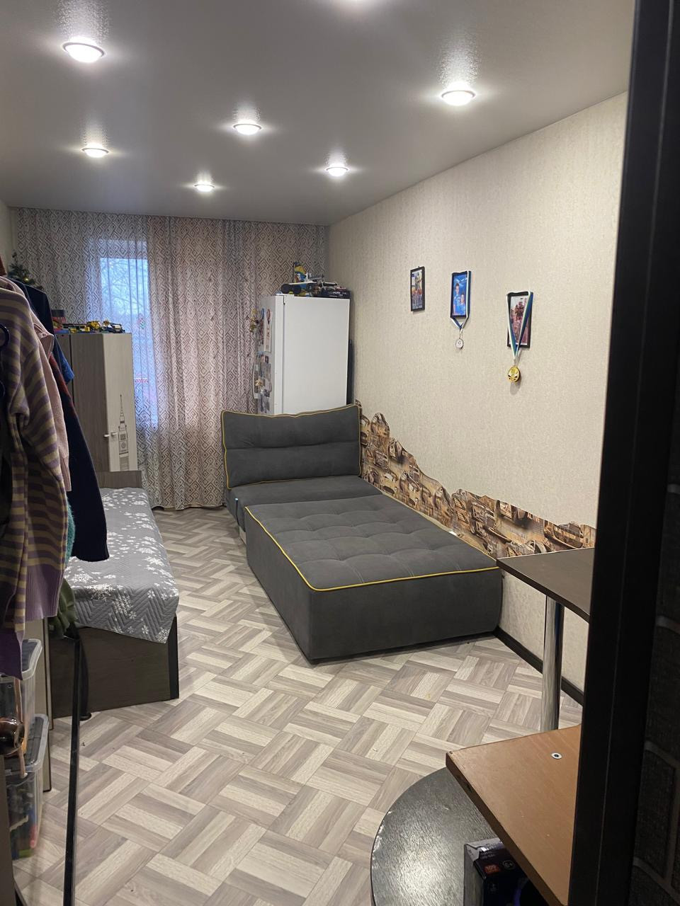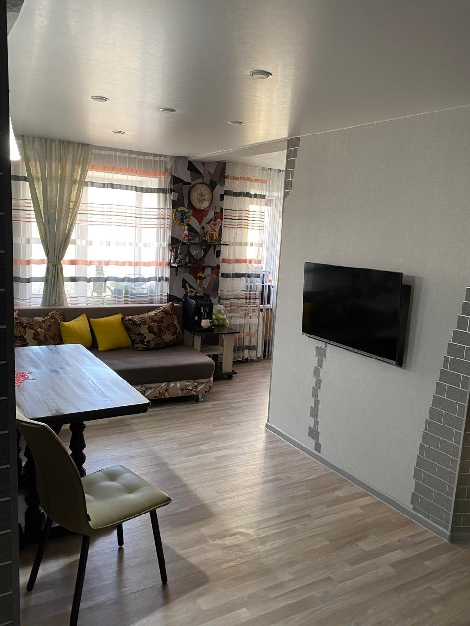 Сделан свежий современный ремонт. Установлены окна ПВХ, новая сантехника, заменена проводка, натяжные потолки,  перебранные полы, линолеум.Санузел совмещен .Новая металлическая дверь.