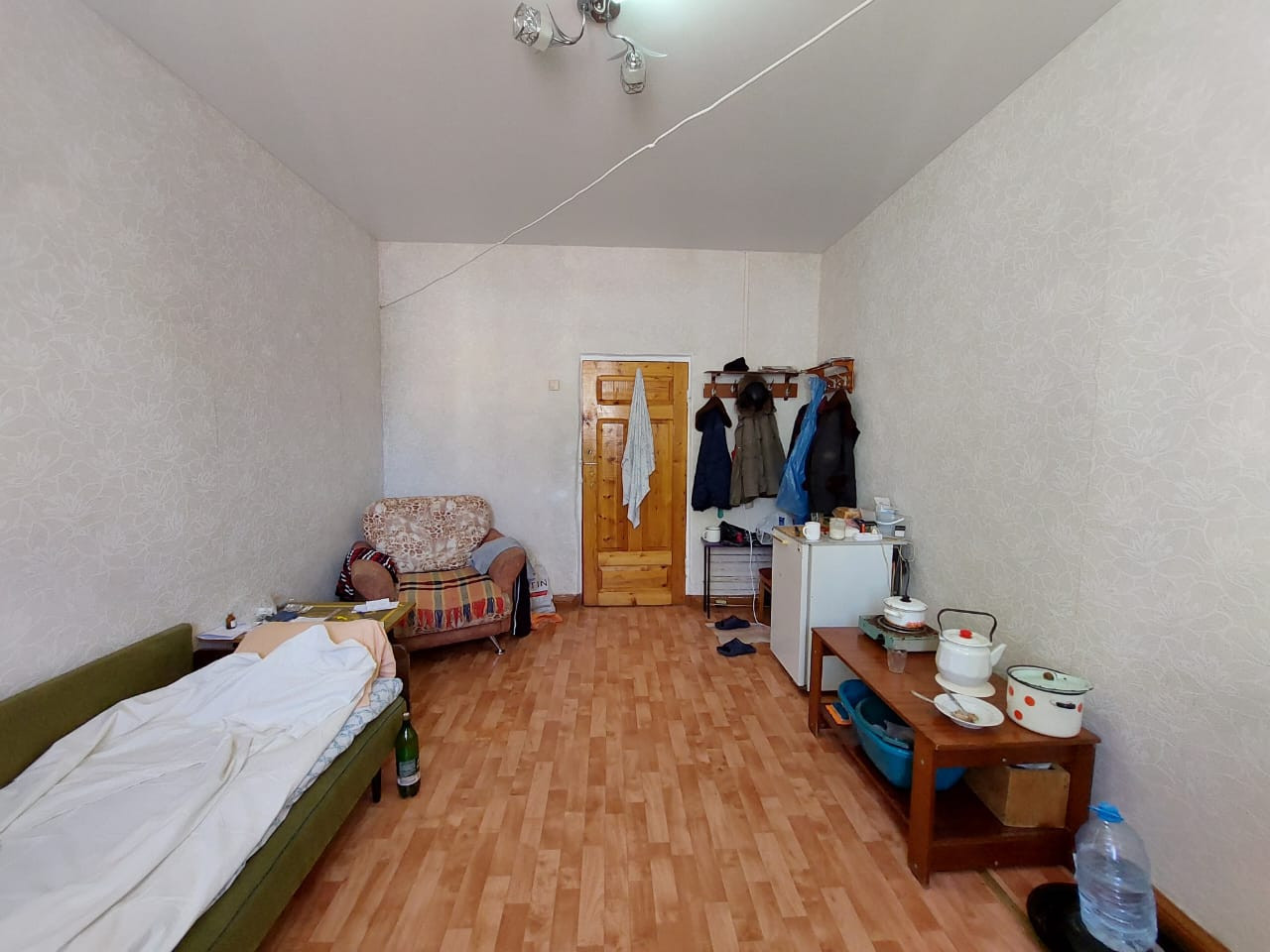 Косметическое состояние, окно ПВХ, двойная дверь. Солнечная сторона, тепло. На этаже чисто, спокойные соседи. Рядом школа, детский сад, автобусная остановка.