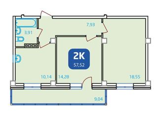 Общая площадь: 57.52 м2