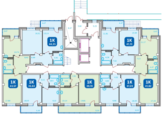 Общая площадь: 43.57 м2