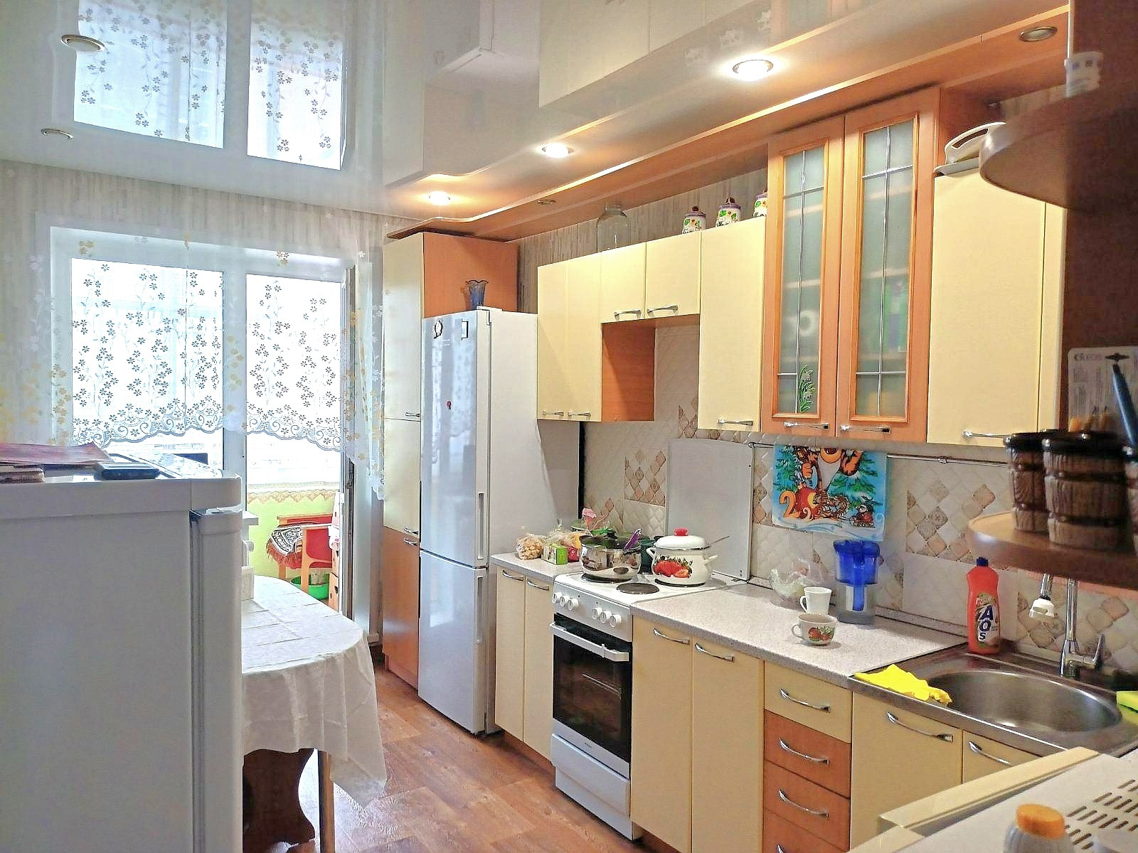 Продам уютную 4-Х КОМНАТНУЮ КВАРТИРУ в районе с развитой инфраструктурой. Все значимые объекты в шаговой доступности: детская площадка во дворе, школа через дорогу, садик во дворе, магазины, ТЦ Лето, Батон, Пятерочка, аптеки, Колизей, остановки общественного транспорта, и многое другое. В квартире сделан качественный ремонт (делали для себя). Стены выровнены, натяжные потолки, санузел в кафеле, хороший линолеум на полу. Сантехника, окна, двери поменяны, 4 лоджии! Общая площадь 86 кв.м.