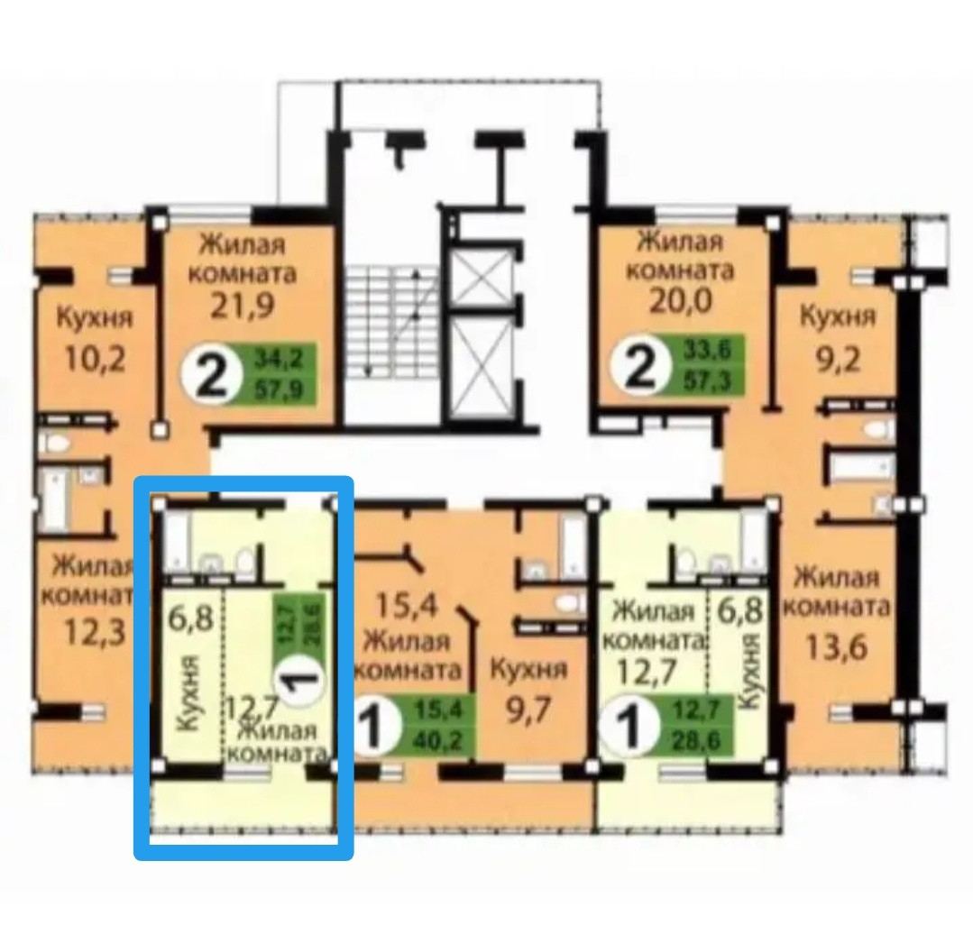 Общая площадь 28.6 м2