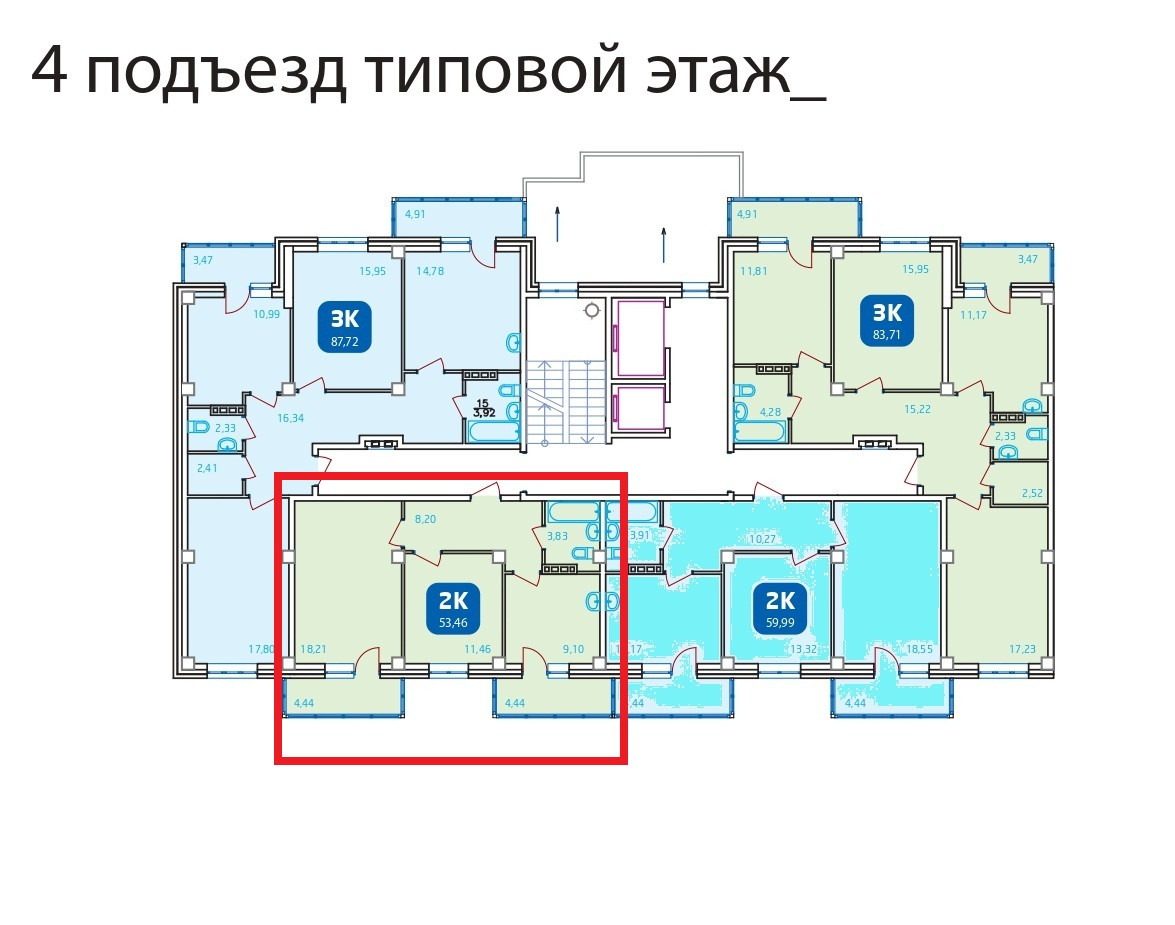 Общая площадь 53.5 м2