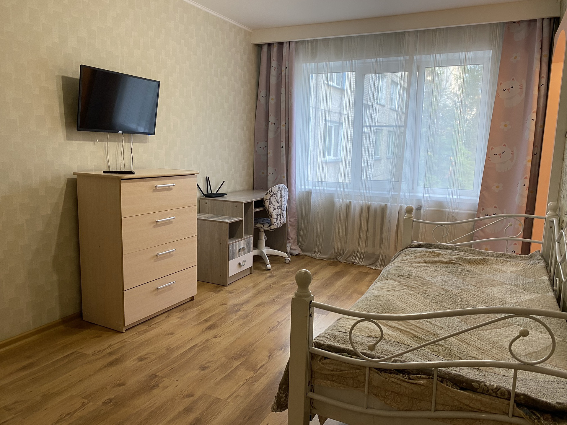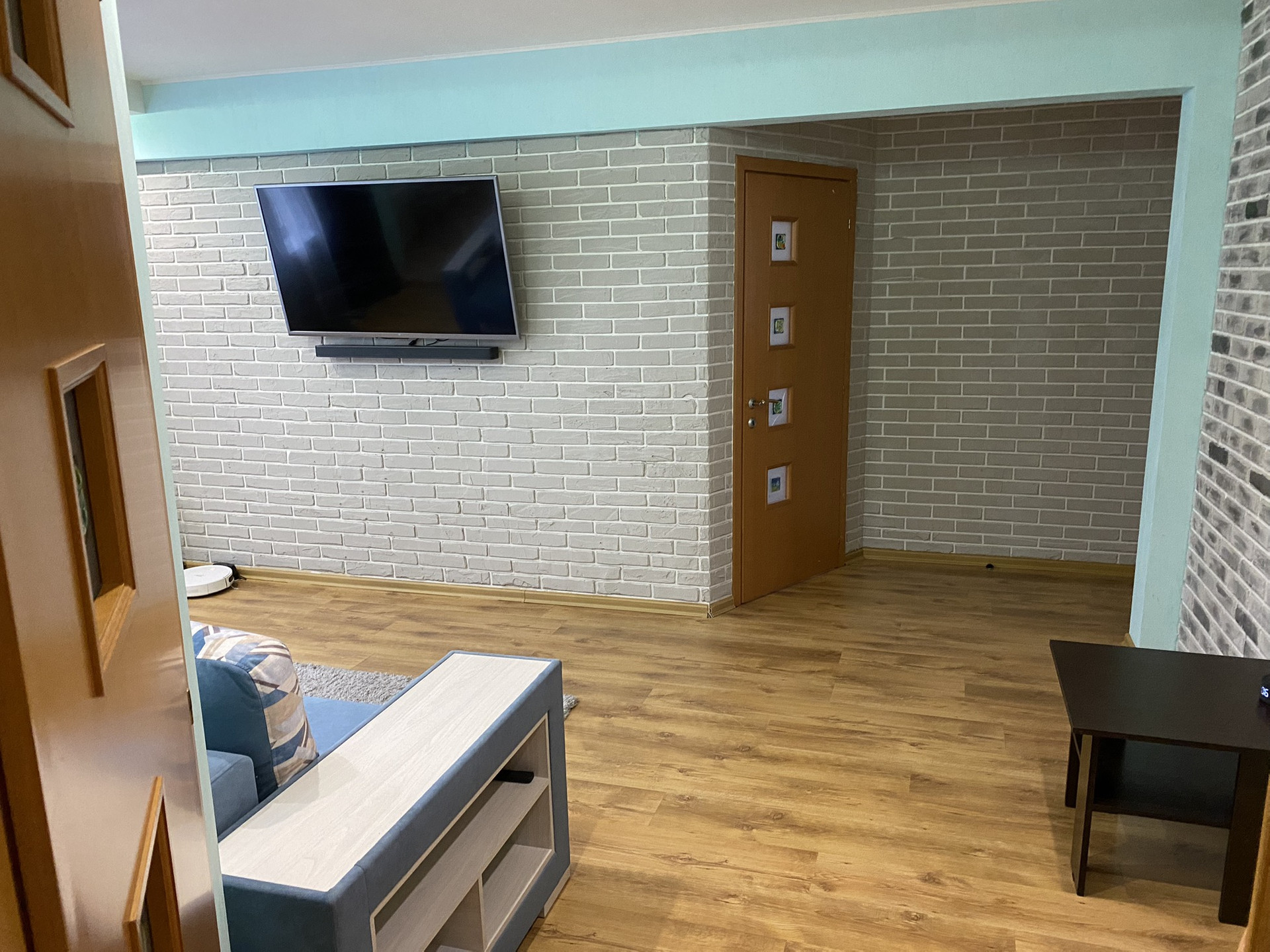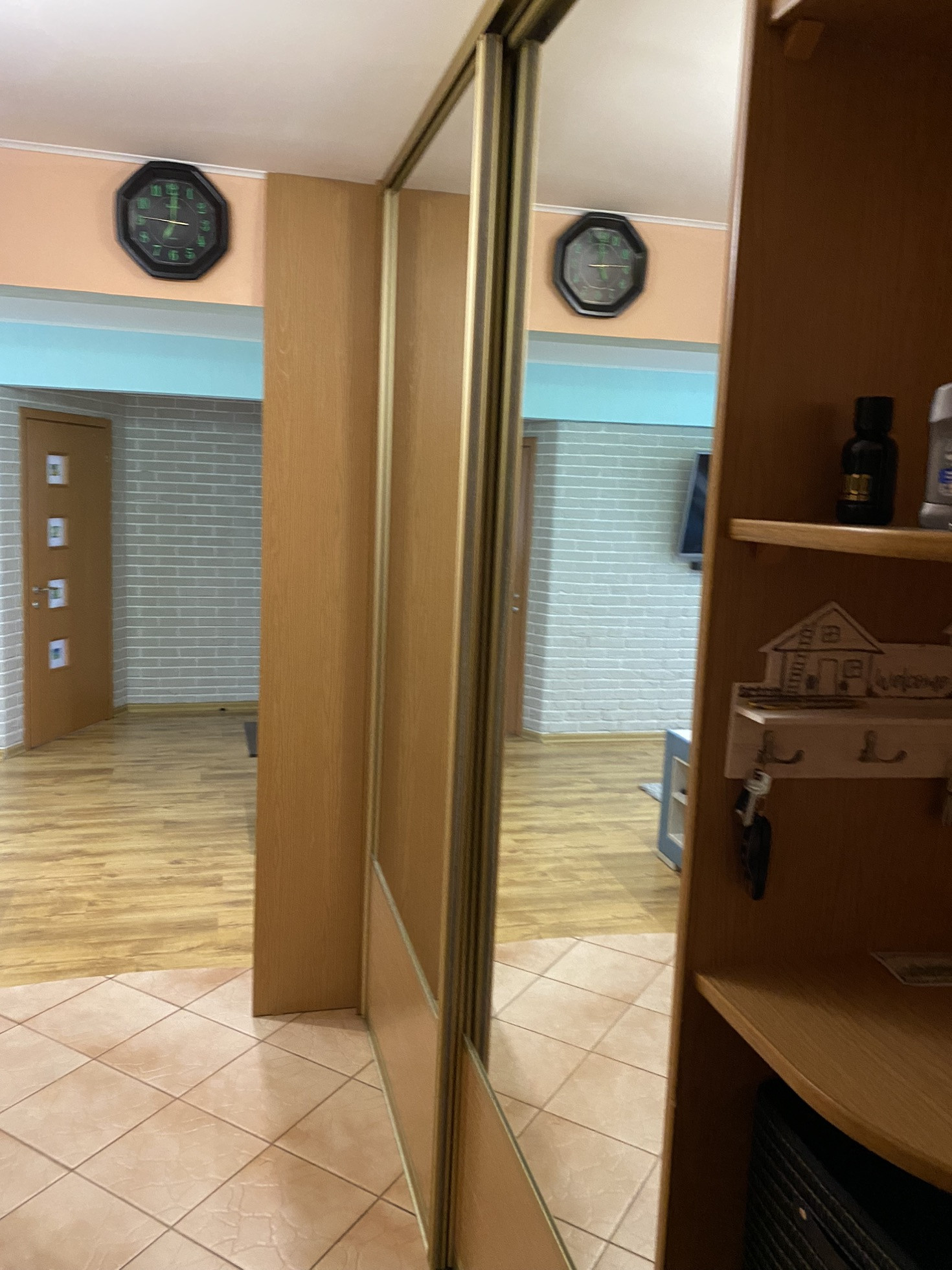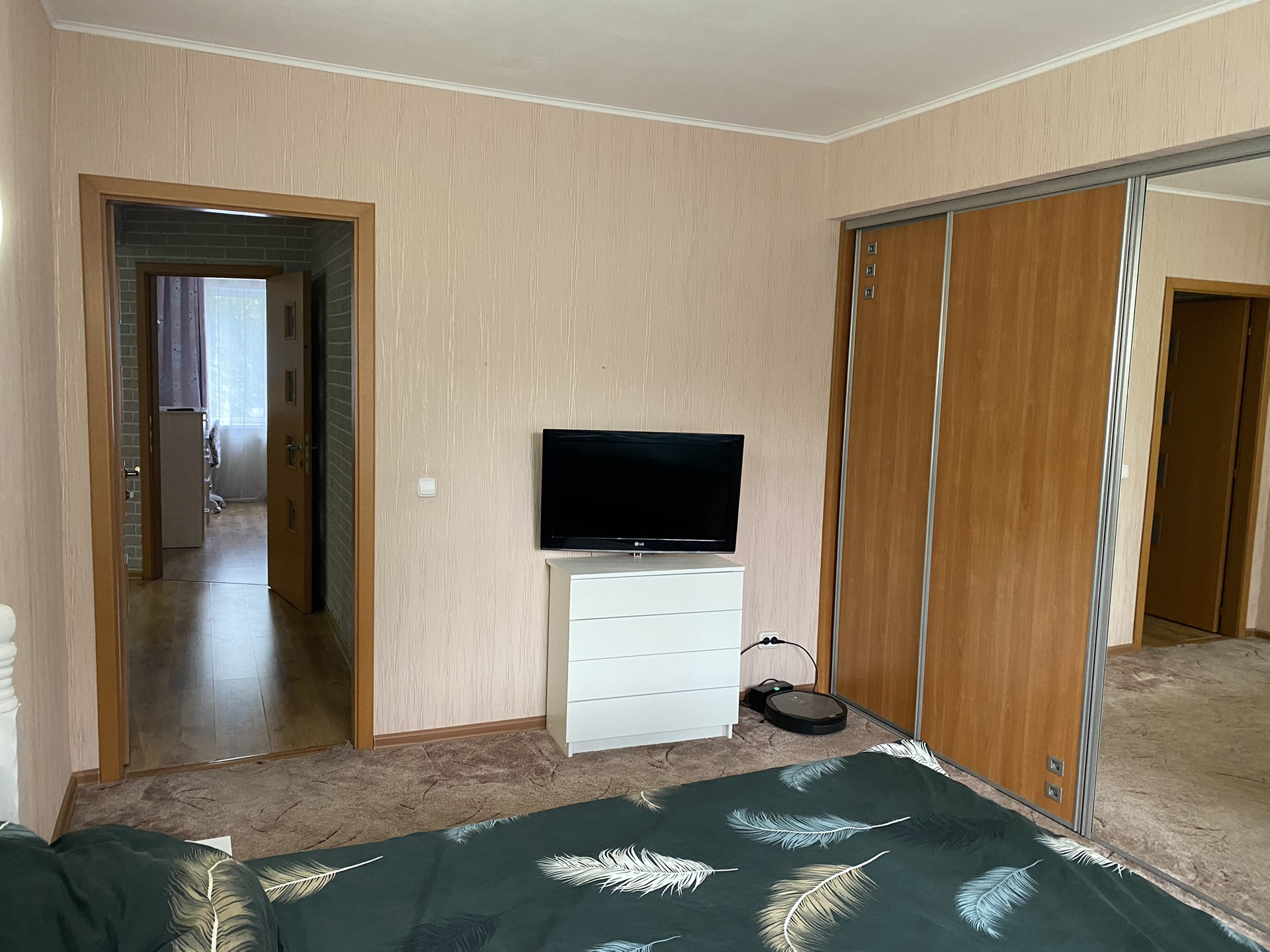 Отличное состояние, очень тёплая, шумоизоляция отличная. Полы бетон. В ванной на кухне и коридоре плитка. В зале и комнате ламинат, в спальне ковролин. В ванной тёплые полы.  Все радиаторы отопления заменены на новые чугунные. Три больших встроенных шкафа что позволяет разместить очень много вещей. Балкон остеклен. Двери межкомнатные (Италия) хоро